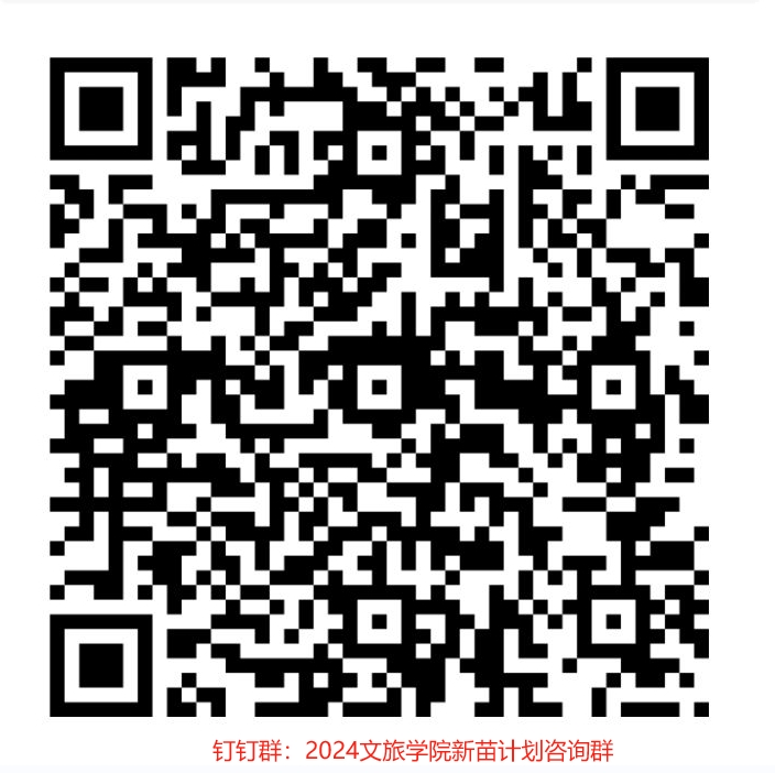 2.关于此次新苗人才计划项目的相关通知、申报书和汇总表或有其他问题,可以钉钉扫码加入“2024文旅学院新苗计划”群,咨询、交流了解。