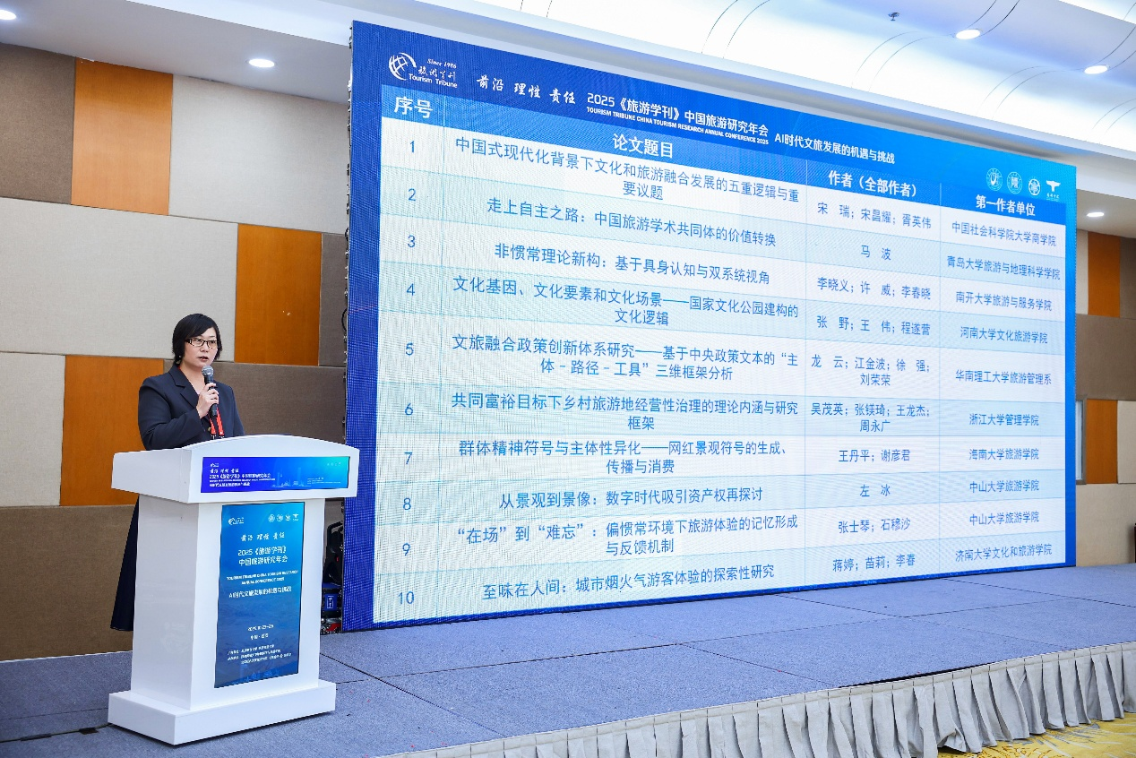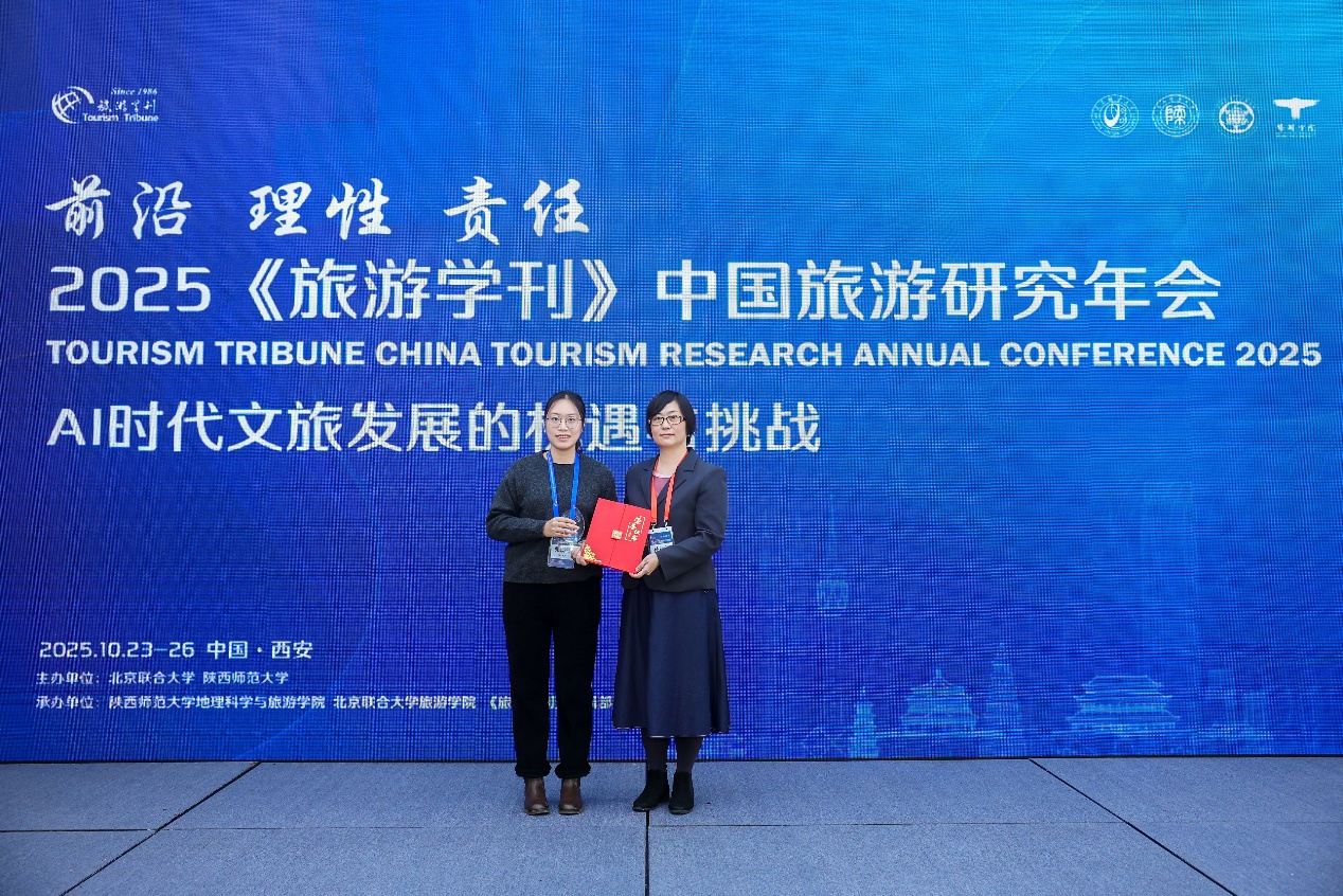 “促进共同富裕,最艰巨最繁重的任务仍然在农村”。2025年10月23日,台湾三级片 青年教师王龙杰合作撰写的《共同富裕目标下乡村旅游地经营性治理的理论内涵与研究框架》一文,荣获《旅游学刊》2024年度优秀论文。《旅游学刊》副主编、北京联合大学旅游学院孙业红教授于学刊年会上为论文颁奖。