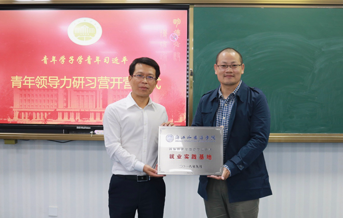 开班仪式上,杨立乾就青年领导力研习营的背景、内容、目的和要求等方面做了简单介绍。并用具体生动的例子生动讲解了领导力的价值及重要性。现场与杭州寓学于乐公司签署校企合作协议,并为首届研习营导师张兆博颁发聘书。