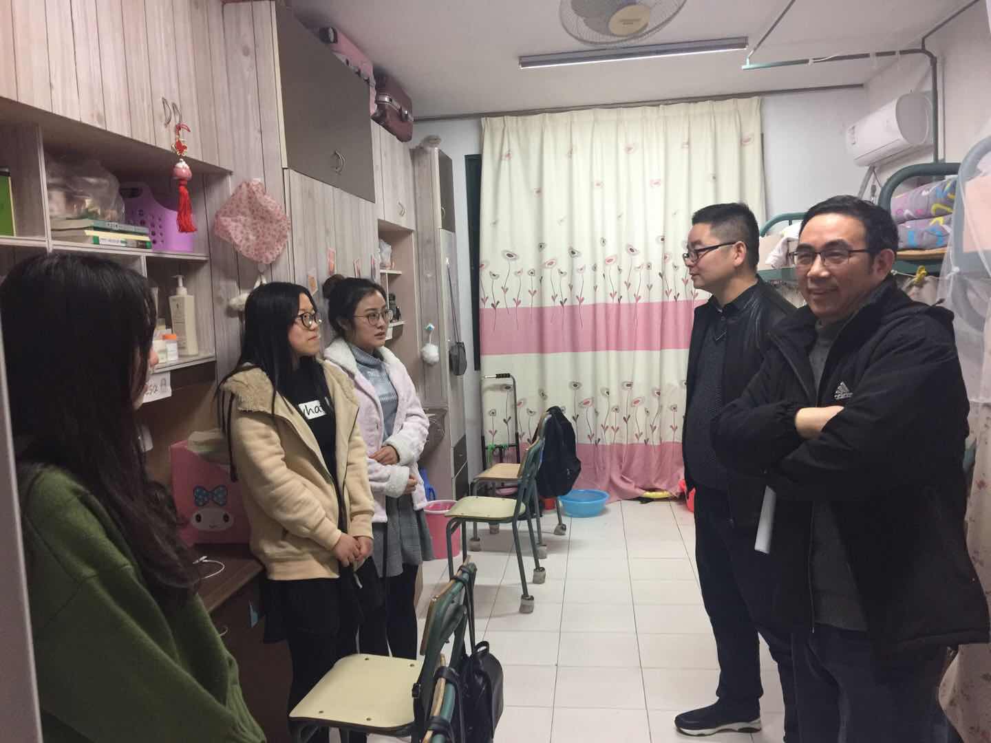 学院领导对学生的住宿问题十分牵挂。当日傍晚,学院一行人走进雅仪3号楼学生寝室,代表学院看望商鹰学子,询问了同学们学习、生活等情况,勉励同学们积极进取、刻苦努力,学好文化知识,规划好自己的大学生活。
