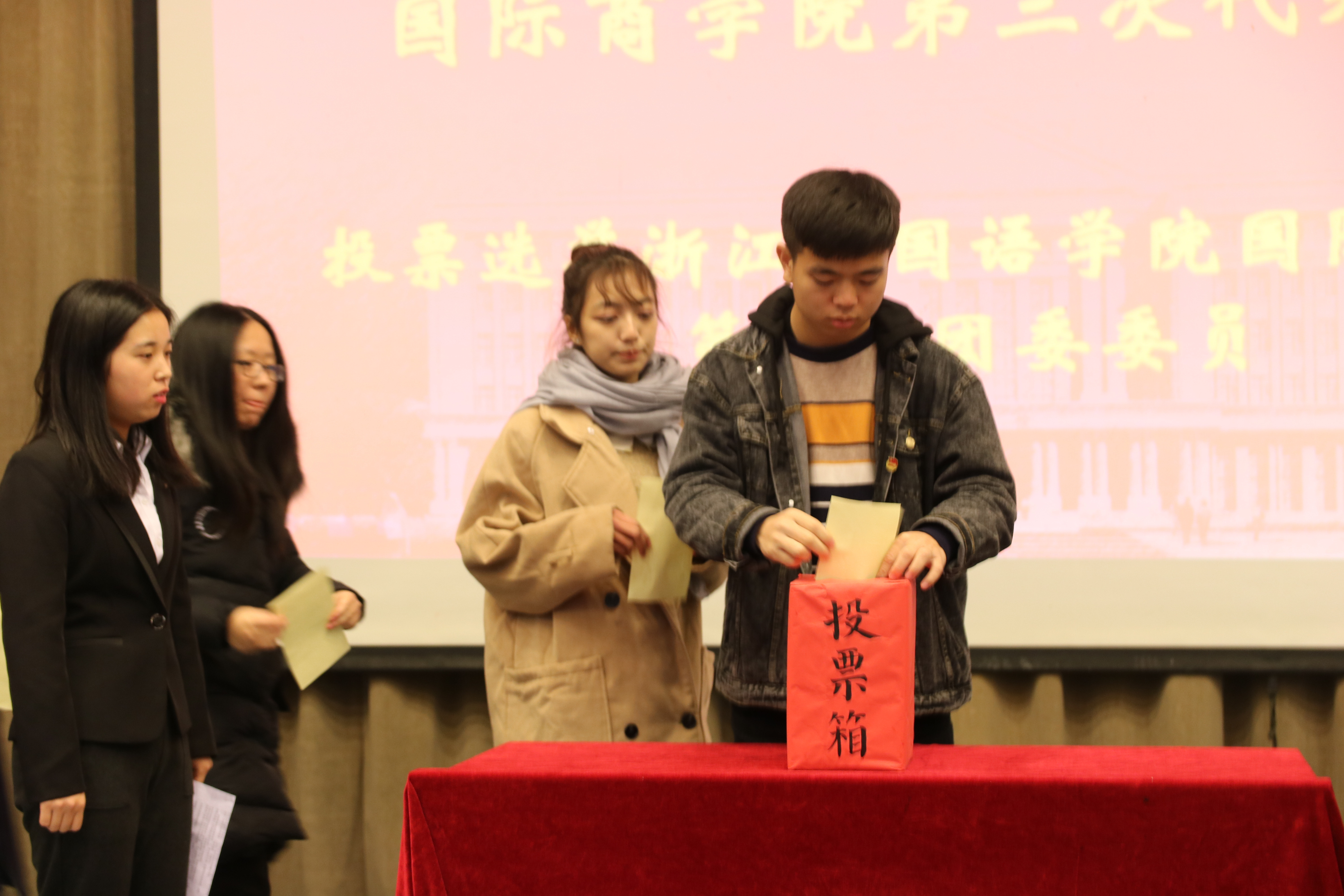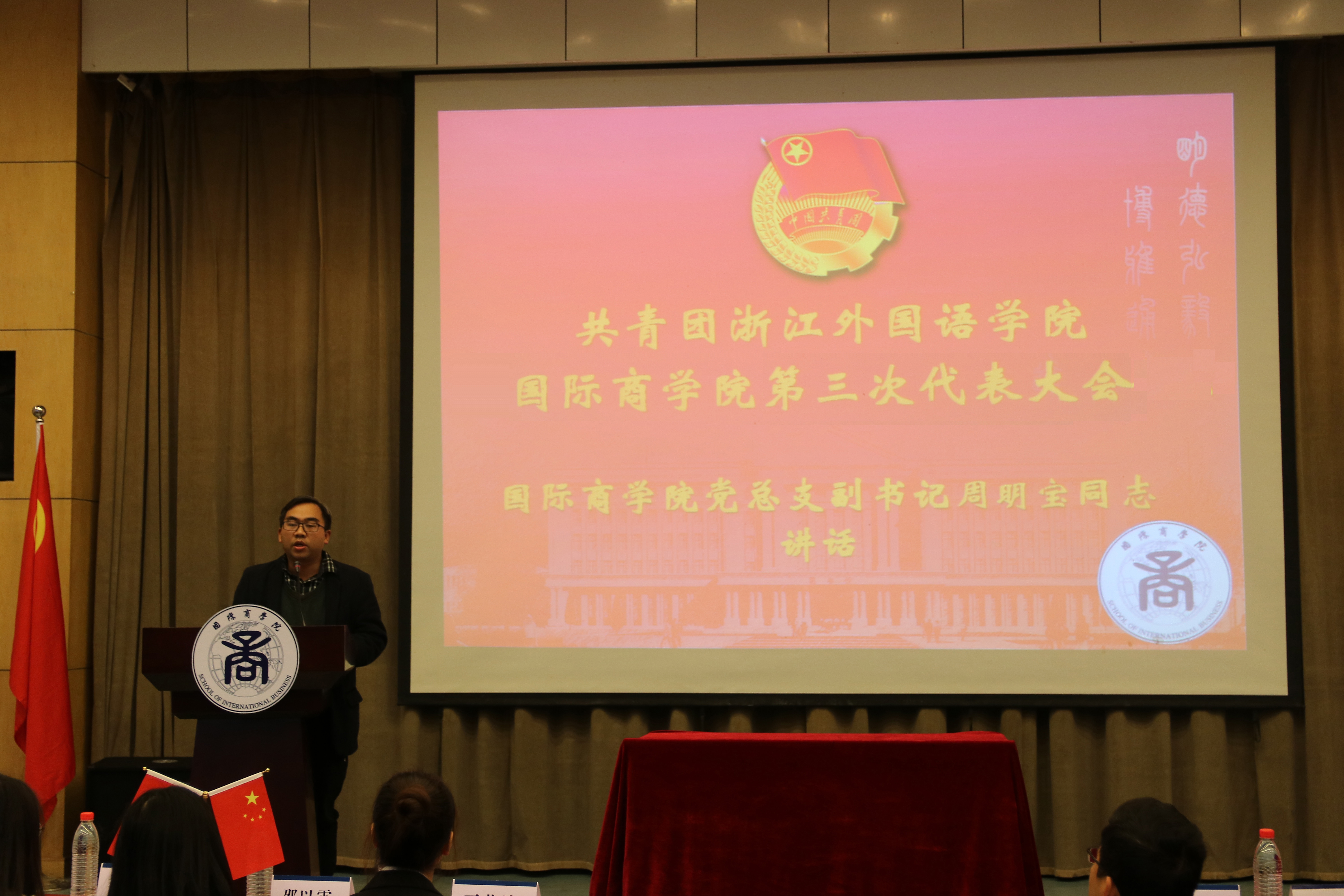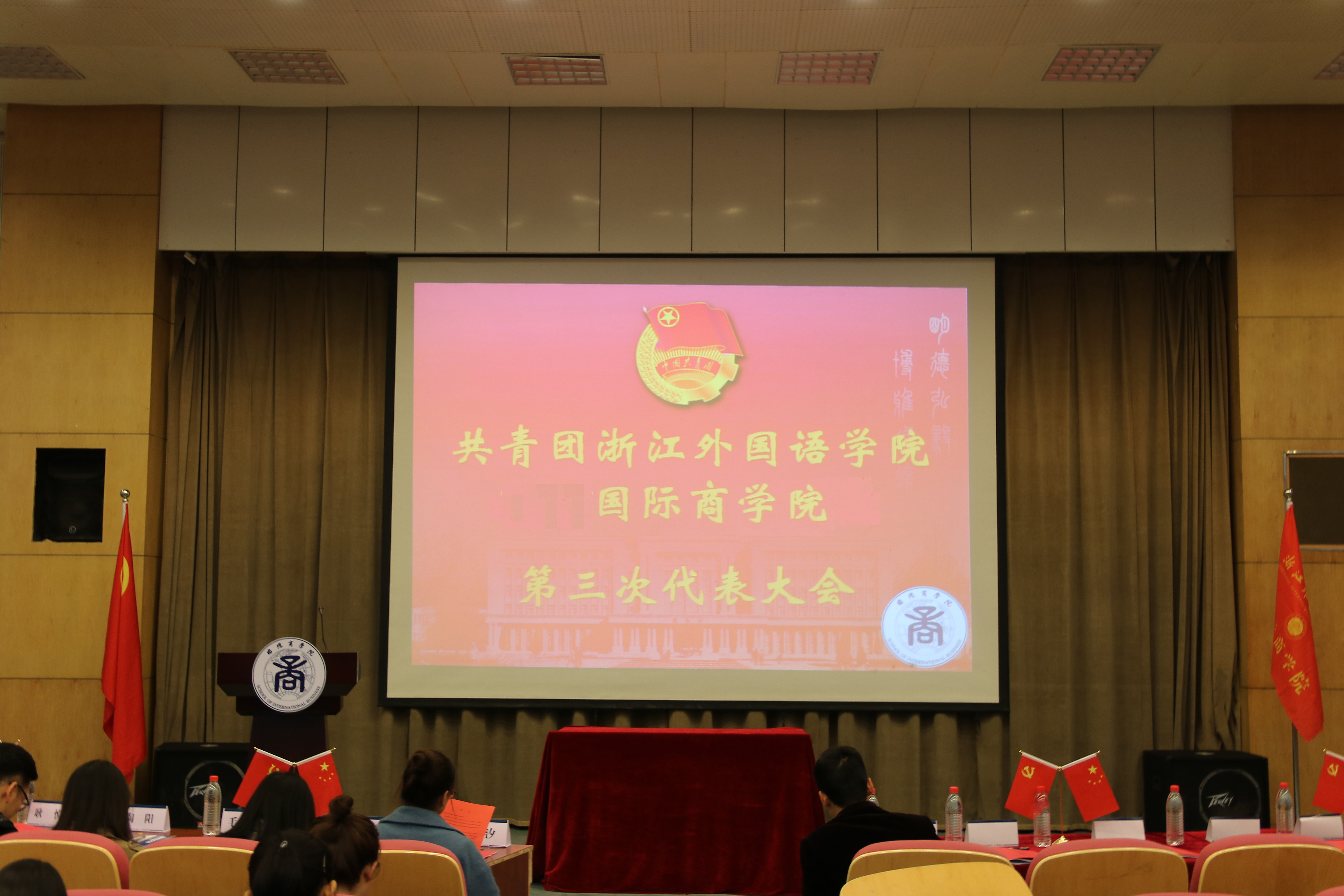 国际商学院第三次代表大会在望院E115隆重召开。校团委书记傅尧力,学院党总支副书记周明宝,学院团委书记梁汲媛,学院团委副书记周长喜以及学院各辅导员,各兄弟学院团委书记助理受邀出席,80余名团员代表参加此次会议。