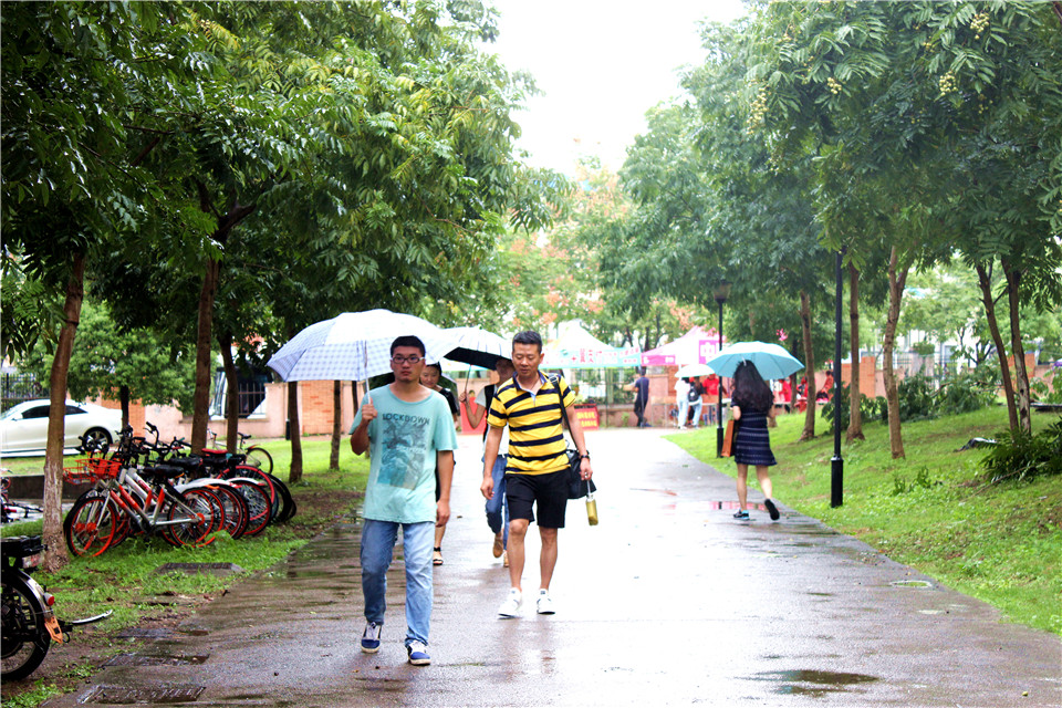 迎来了680余名萌新。或是天公的戏闹与考验,迎新当日,瓢泼大雨不绝,却也丝毫不影响迎新志愿者的热情以及新生入学的兴奋。秋雨浸染中的浙外校园显得格外朝气蓬勃。