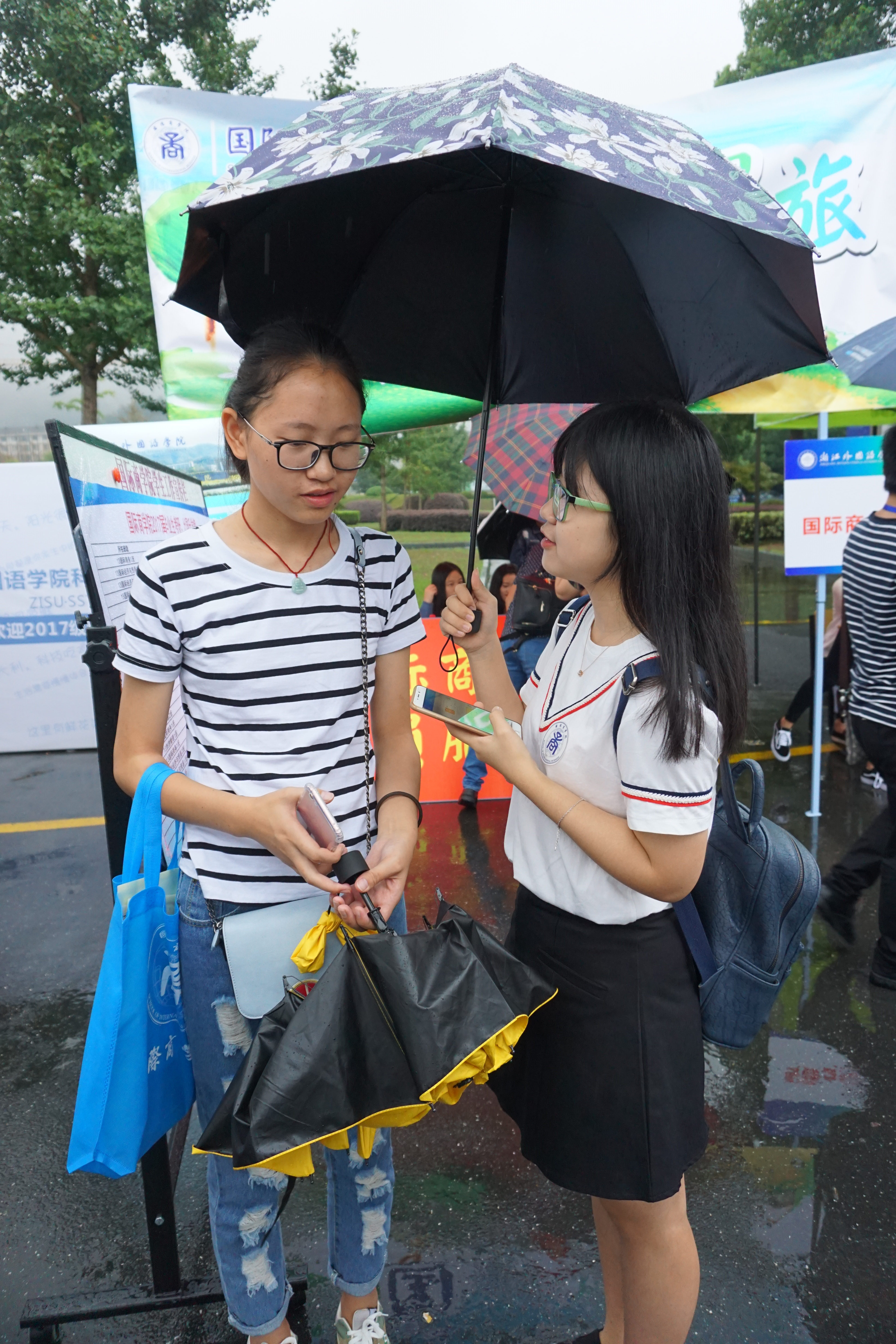 17会计3班的祝璐茜同学接受采访时如是说到,“第一印象觉得人好多,志愿者到处都有,学姐们很热情,感觉虽然下雨天,可是很温暖”