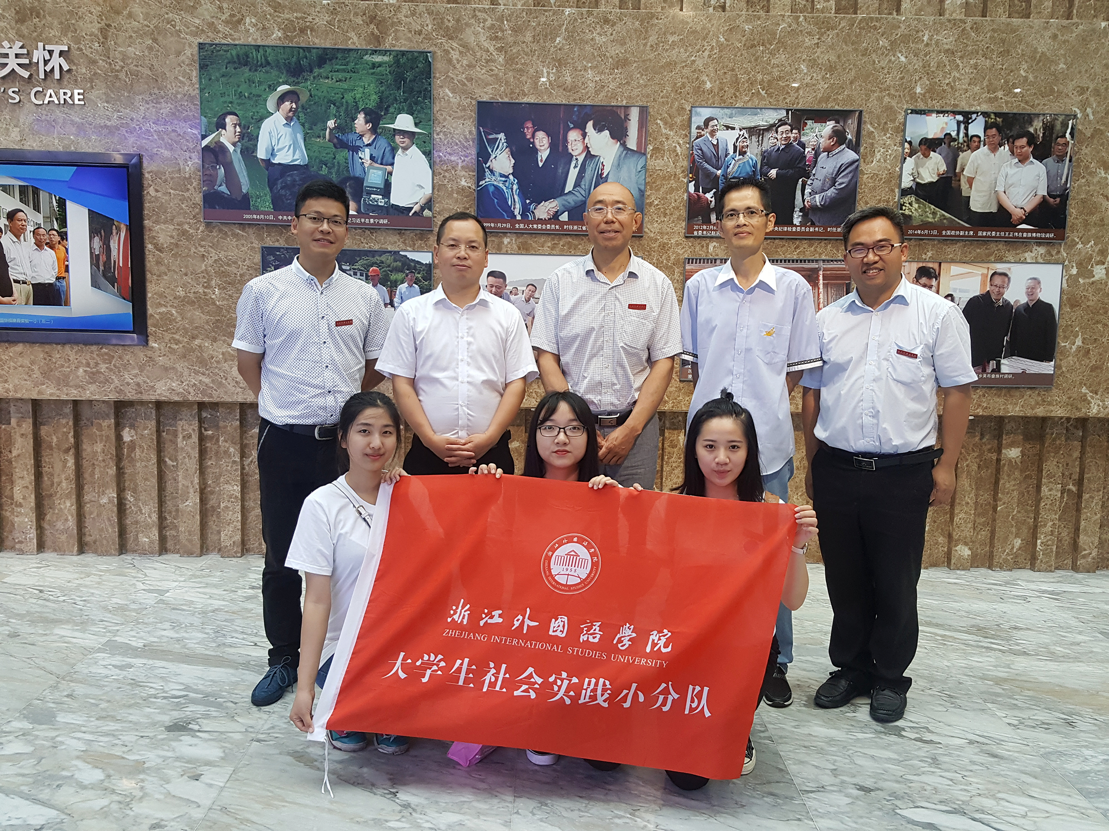 授牌仪式结束后,在县委办副主任、党史办主任张兆清的带领下,赵伐一行跟随实践队员一起实地走访了中国畲族文化博物馆和景宁城市展览馆,了解了景宁特有的畲族韵味、城市建设面貌、未来发展规划和畲族自治县自建县三十周年以来在政治、经济、文化、社会、生态等方面取得的喜人成果。