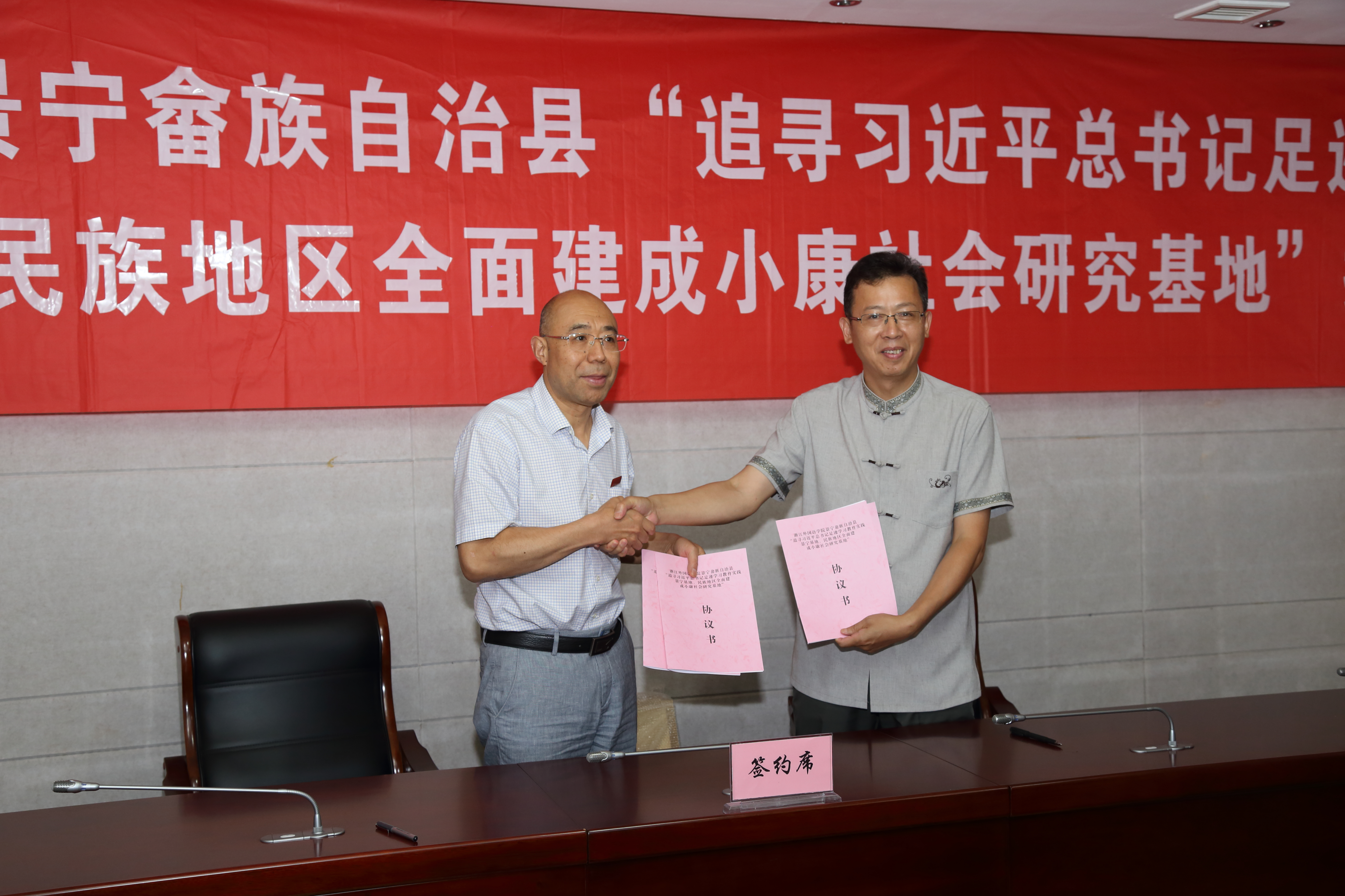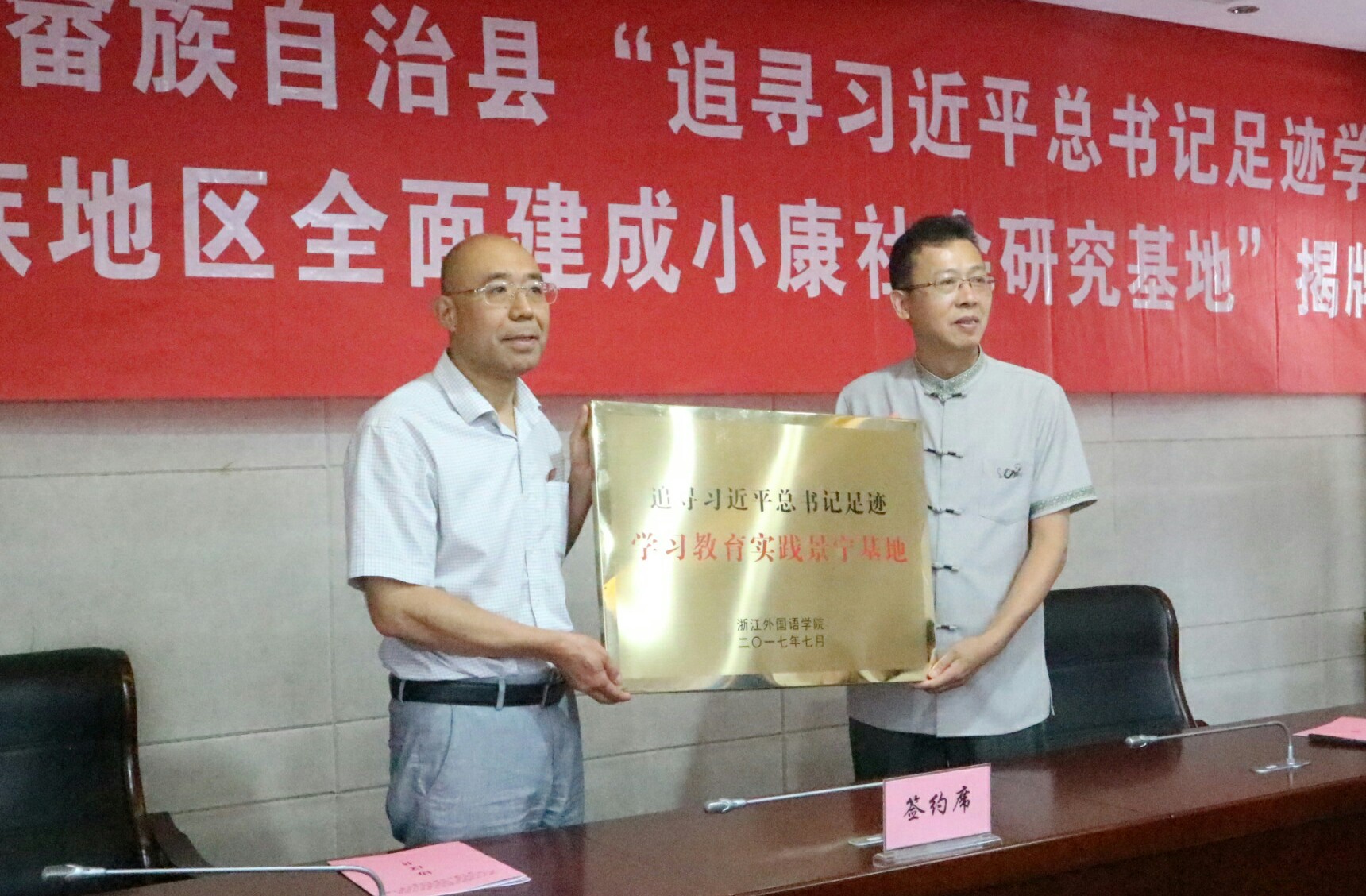 随后,双方进行了基地协议签字和授牌仪式。成立基地旨在以大学生暑期社会实践为契机,建立“青年学子学青年习近平”专项实践队伍,将“青年学子学青年习近平”学习教育实践活动推向深入,深入习近平总书记曾经工作和联系过的地方,追寻足迹,感悟民生,调查研究,助推发展,努力打造全省“青年学子追寻习近平总书记足迹学习教育实践”示范基地和全国首个“民族地区全面建成小康社会研究”示范基地。