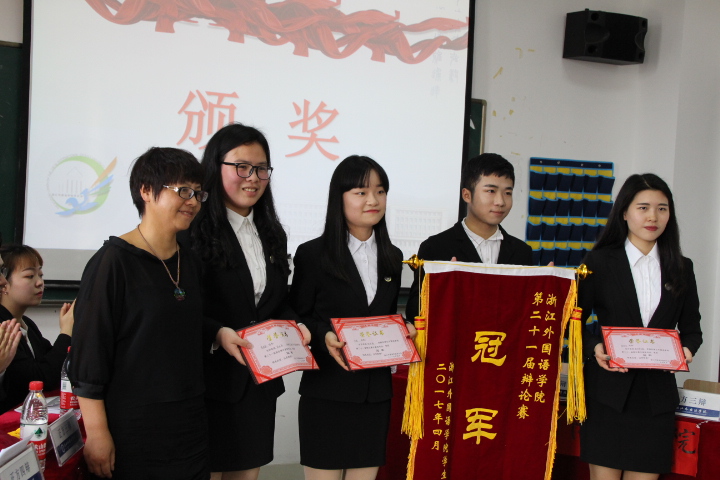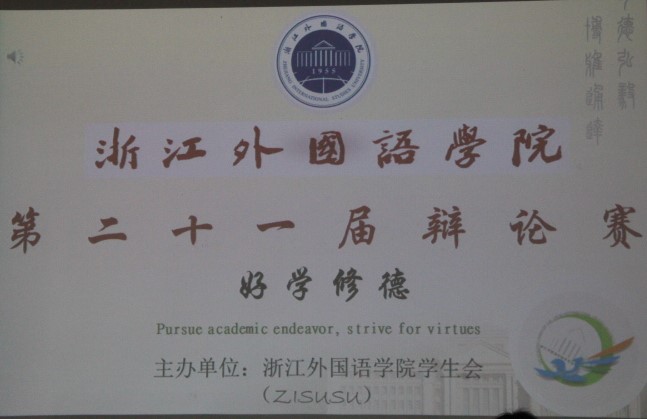 4月20日下午,第二十一届校辩论赛决赛于品院A501顺利举行,形式与政策教研处主任朱秀芳老师,校辩论队金牌指导周明宝老师,文化教研室主任毛巍蓉老师,社科部思品与道德修养教研室主任兰小平老师,校学生会秘书长吴宗笋老师作为评委出席本次比赛。此外,浙江工业大学学生会代表、浙江科技学院学生会代表、台湾三级片