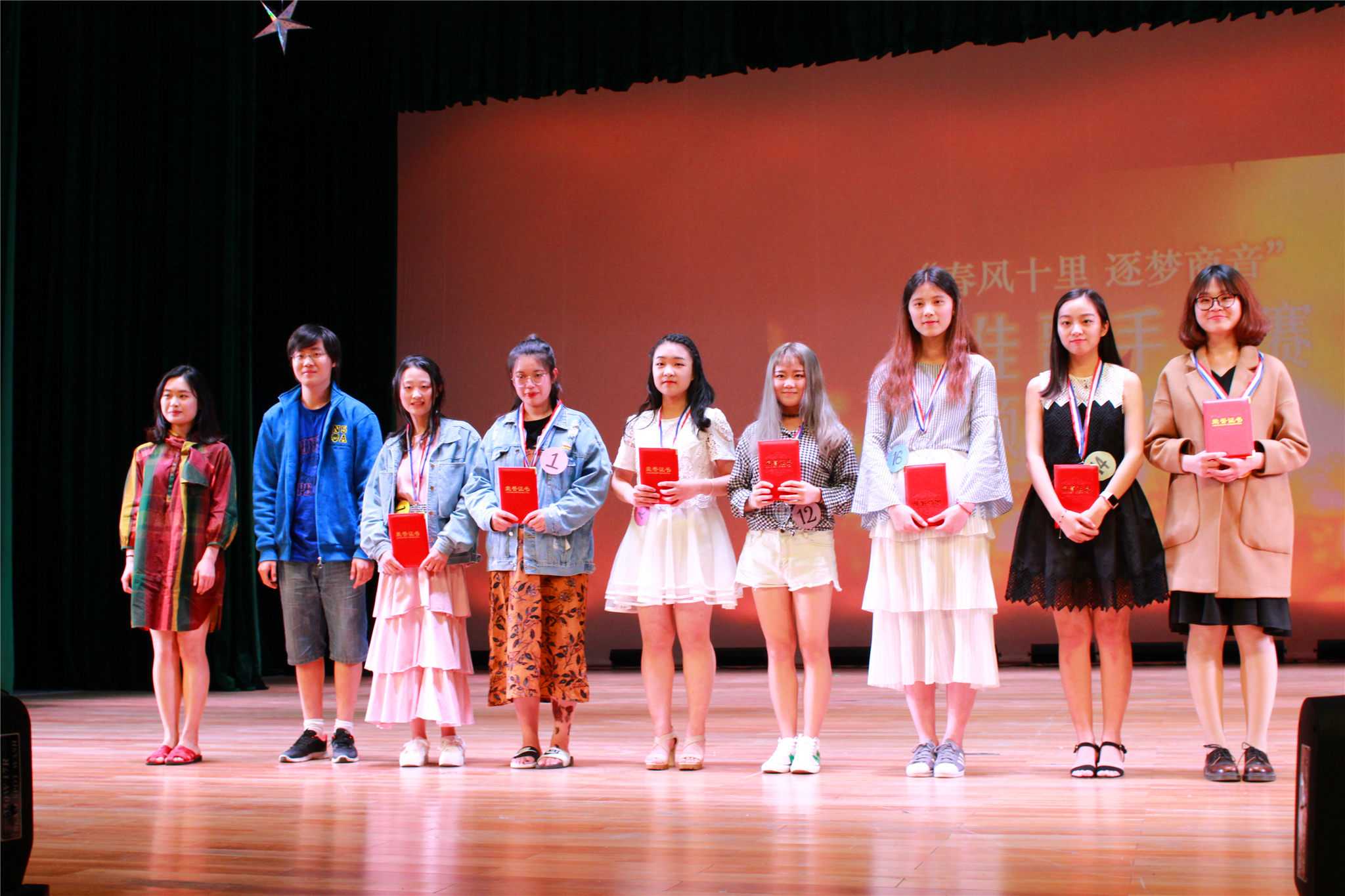 在表演赛中,王星月等四位同学以一首《空白格》开场,动人的旋律,抒情的伴奏,让现场观众沉浸其中。来自李明轩等同学的《如果没有你》,虽是女生却有着深沉、哀而不伤的嗓音,配合默契,专注而投入的演唱,赢得了全场观众阵阵掌声。动感又青春洋溢的《good time》嗨翻全场,一曲《如果有来生》获得了评委老师们的一致好评。经过第一轮激烈的角逐,共有8位同学直接晋级决赛。剩余8位选手在复活赛中拿出看家本领,各有千秋。评委老师从音色、音准、声音运用多角度耐心细致地点评,肯定了选手们的精彩表现,也指出了其中存在的不足。最终共有十位选手晋级决赛。最后一轮比赛中,各位选手都表现的十分出色,高潮迭起,令人大呼过瘾。其中,王星月一首《All of me》扣人心弦,来自叶圣涛的《你还要我怎样》,浑厚的嗓音,魅力四射,让人为之着迷。马甜甜人如其名,甜美的歌声,给了《默》以全新的演绎。张天越的一首《泡沫》低音到高音转换自如,令人惊奇不已,掌声不断。经过三轮激烈比拼,最终由叶圣涛获得冠军,张天越和马甜甜分别荣获亚军和季军。