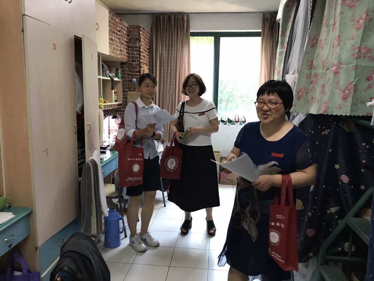 在走访过程中,各位老师与同学们面对面交流,了解同学们学习生活状况。“夏天要到了,要注意防蚊虫”“爱看什么书,学院的青年之家有一些书,可以多去看看”“宿舍很干净,大学期间养成一个良好的生活习惯很重要”……老师们与学生们亲切交谈,拉进来师生间的距离,宿舍之中一片欢声笑语。