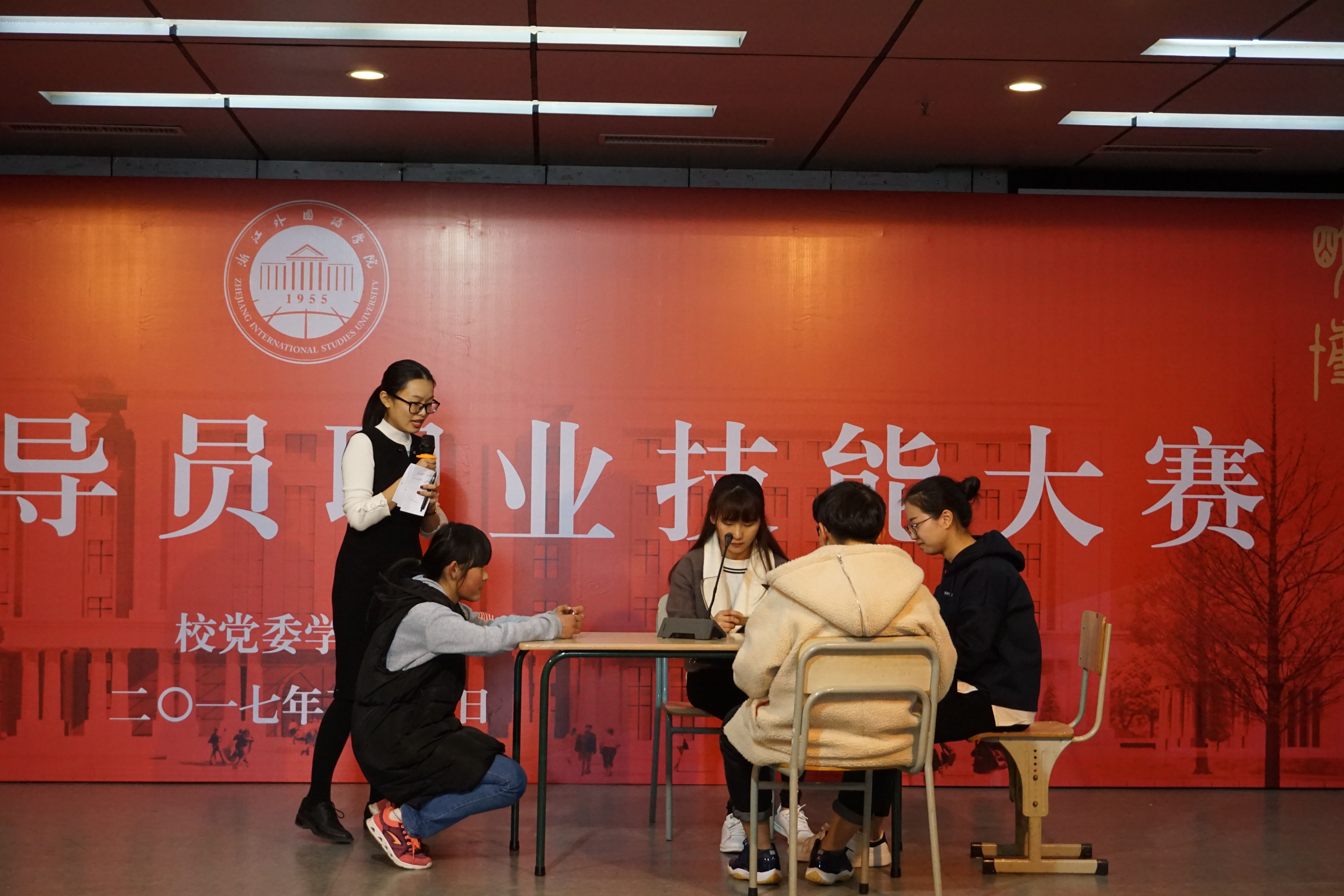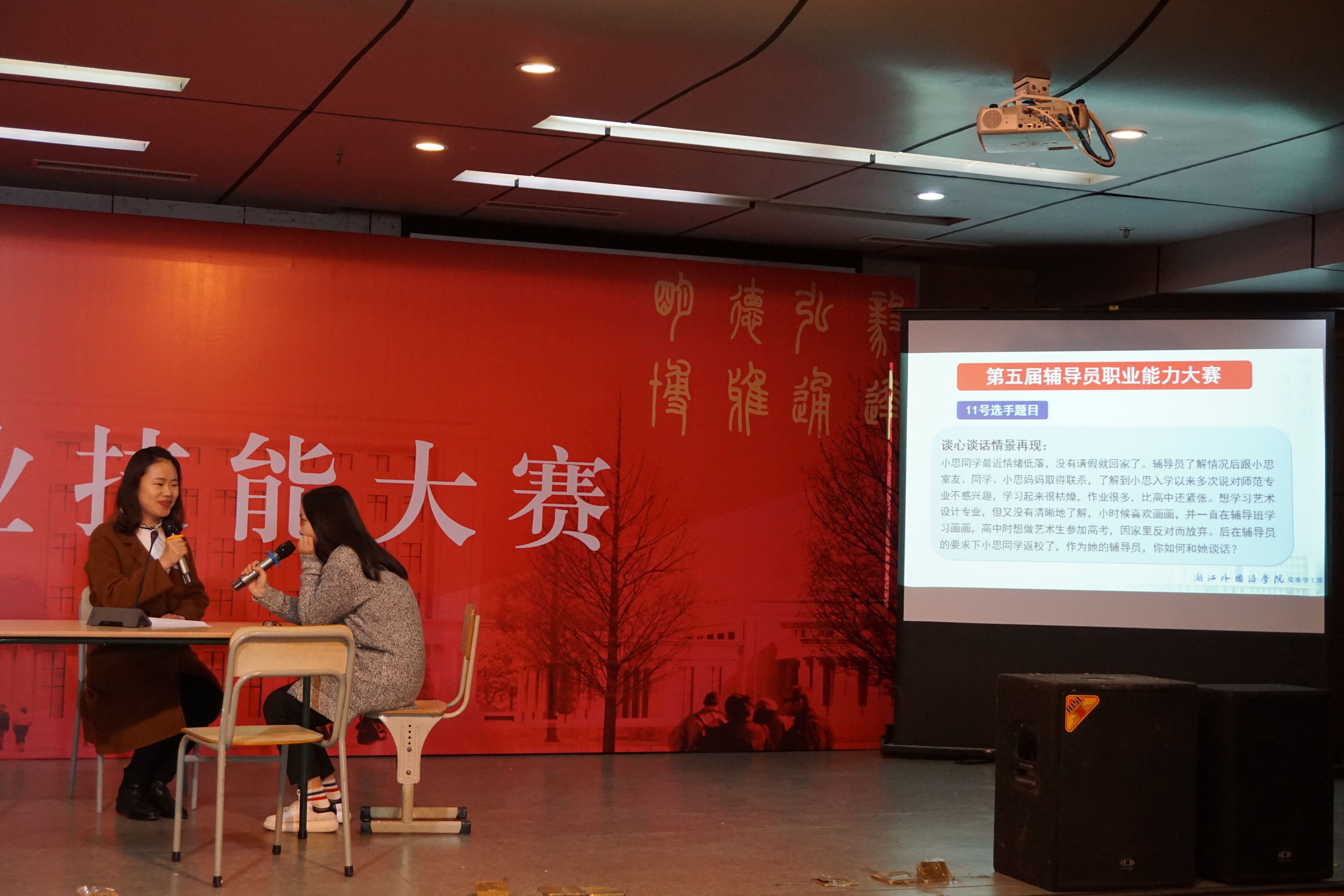 此次大赛邀请了省教育厅、浙江工业大学、浙江科技学院等单位专家担任校外评委,组织部、宣传部、团委等部门相关负责人担任校内评委,学工线全体人员观摩了比赛。