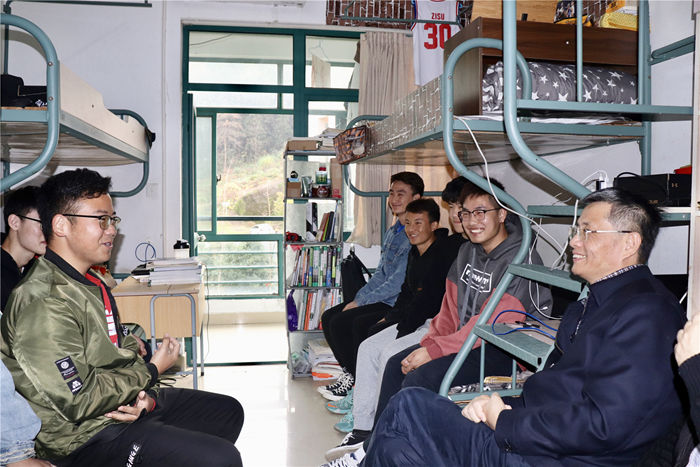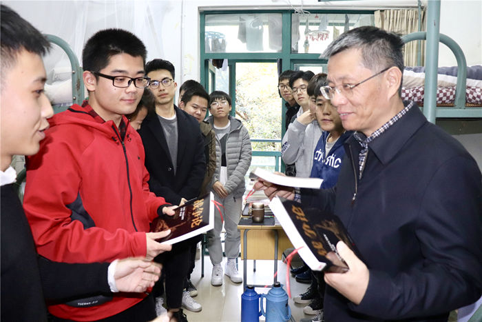 11月22日下午,校党委书记宣勇教授走进台湾三级片 雅正苑男生寝室,与同学们亲切交流,了解同学们学习生活情况。