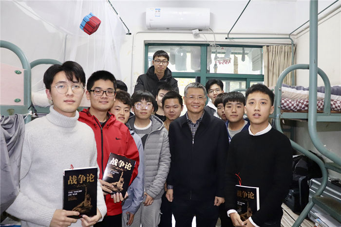 分别时,宣书记给同学们送上了青年习近平在梁家河经常翻看的书——《战争论》,希望同学们在基础阶段进行广泛涉猎通过扩大阅读量来充实自我。他嘱咐同学们认真学习、勤于思考,打牢专业基础。