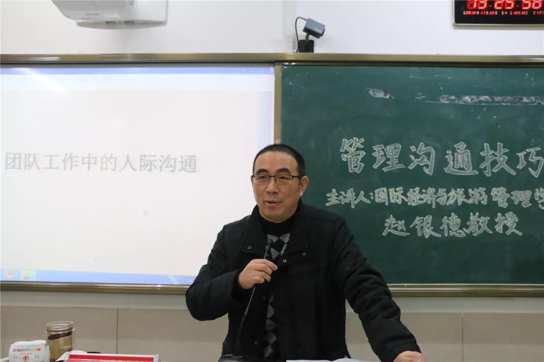 11月22日下午,主题为 “管理沟通技巧培训”的讲座在望D215举行。院长赵银德出席并做主题讲话,各学生组织100余人参加讲座。