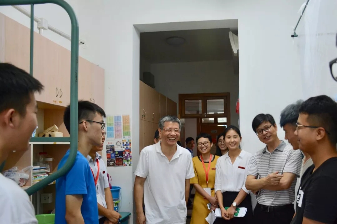 9月15日下午,校党委书记宣勇教授走进台湾三级片 2018级新生寝室,视察慰问迎新人员并与新同学亲切交流。党校办、学生处及学院相关负责人陪同走访。