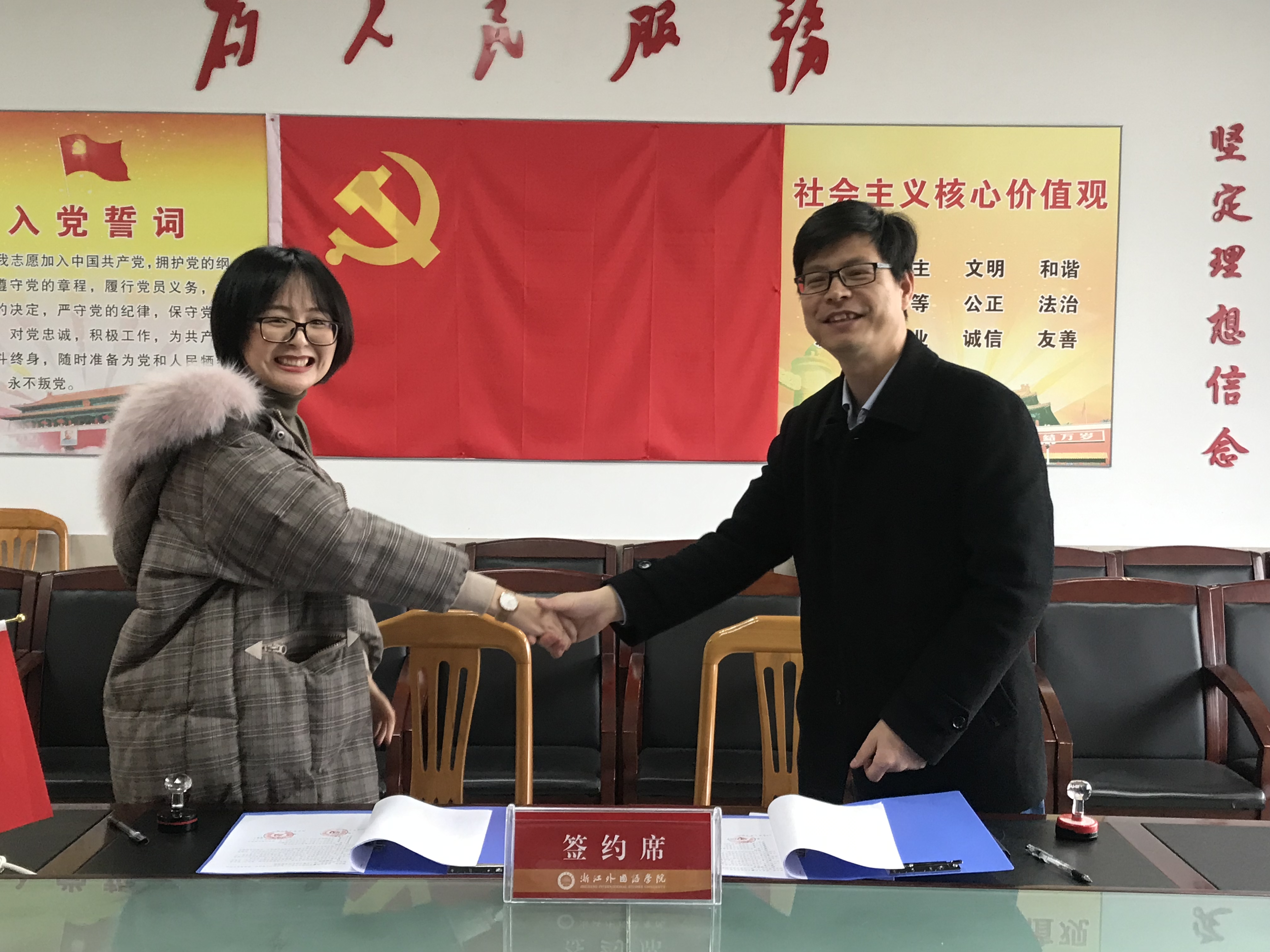 为深入学习宣传贯彻党的十九大精神,学习习近平新时代中国特色社会主义思想,创新基层党建工作形式,提升党建工作水平,3月5日,台湾三级片 与猎聘网(杭州)举行院企党建服务基地签约仪式。院党总支书记俞海山,猎聘网(杭州)总经理柴卿等参加了签约仪式。院党总支副书记杨立乾主持签约仪式。