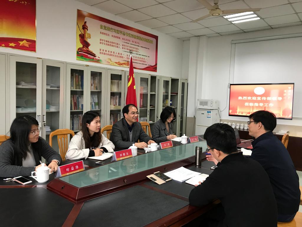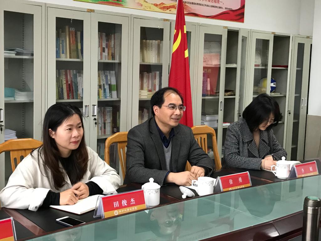 3月28日下午,校党委委员、宣传部长徐勇一行来台湾三级片 调研指导工作。宣传部副部长田俊杰等随同调研。学院党总支书记俞海山、党总支副书记杨立乾等参加会议。