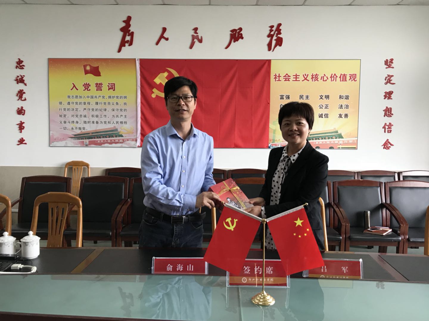 之后,双方签署了党建合作协议书,学院党总支向浙科经管学院党委赠送了我校“青年学子学青年习近平”学习教育教材,双方今后将加强联动、形成合力,不断提升党建工作水平。