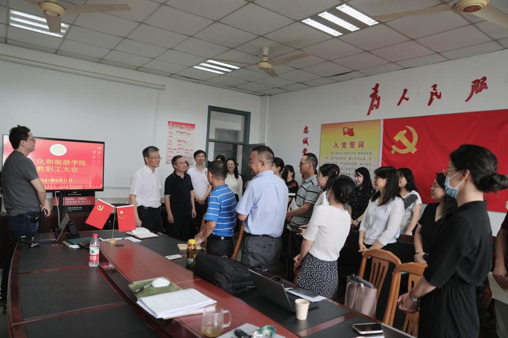 新学期第一天,校党委书记宣勇、党委副书记赵文波、纪委书记邱卫东、副校长张环宙一行走访文旅学院,指导新学期工作,看望学院教职工。党校办主任傅尧力陪同走访。
