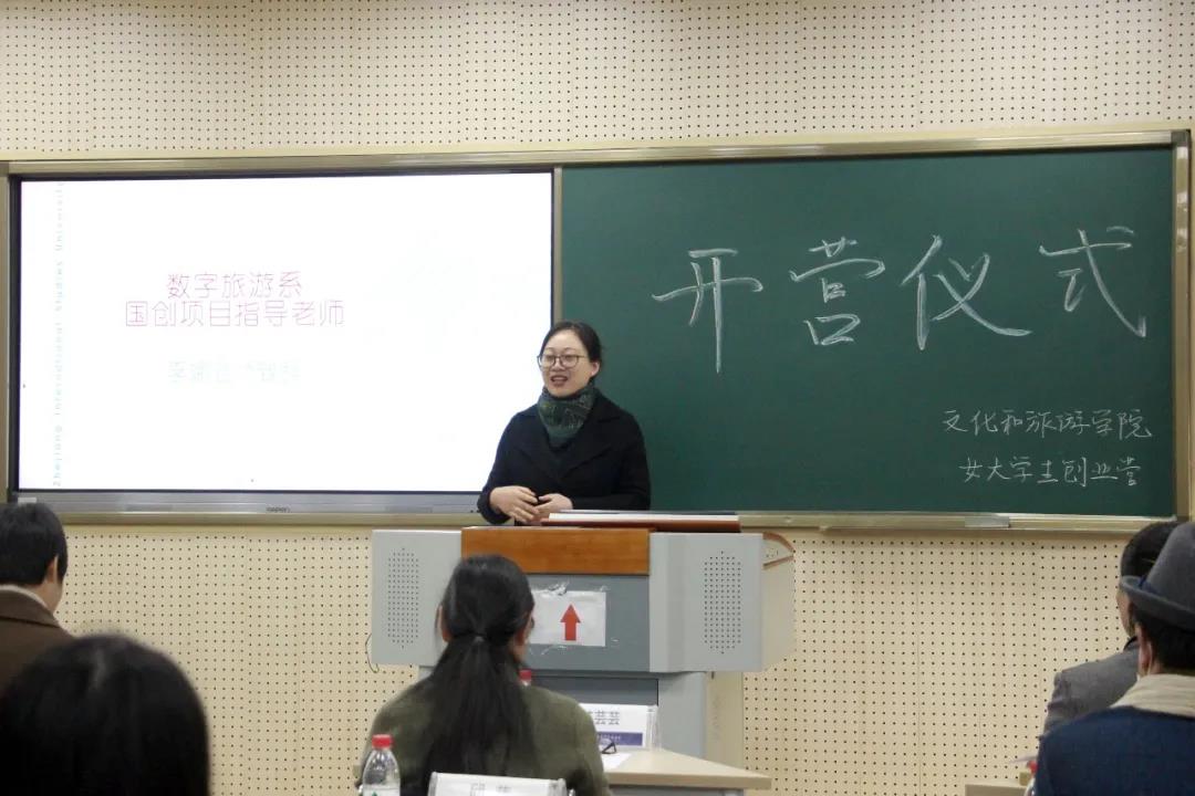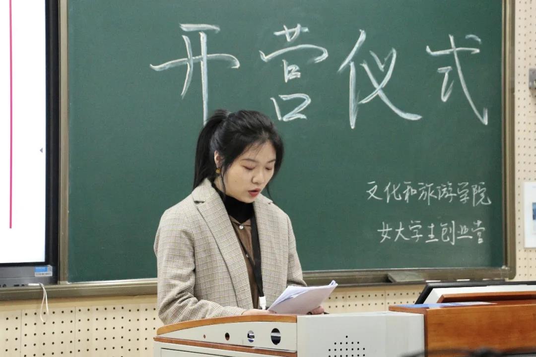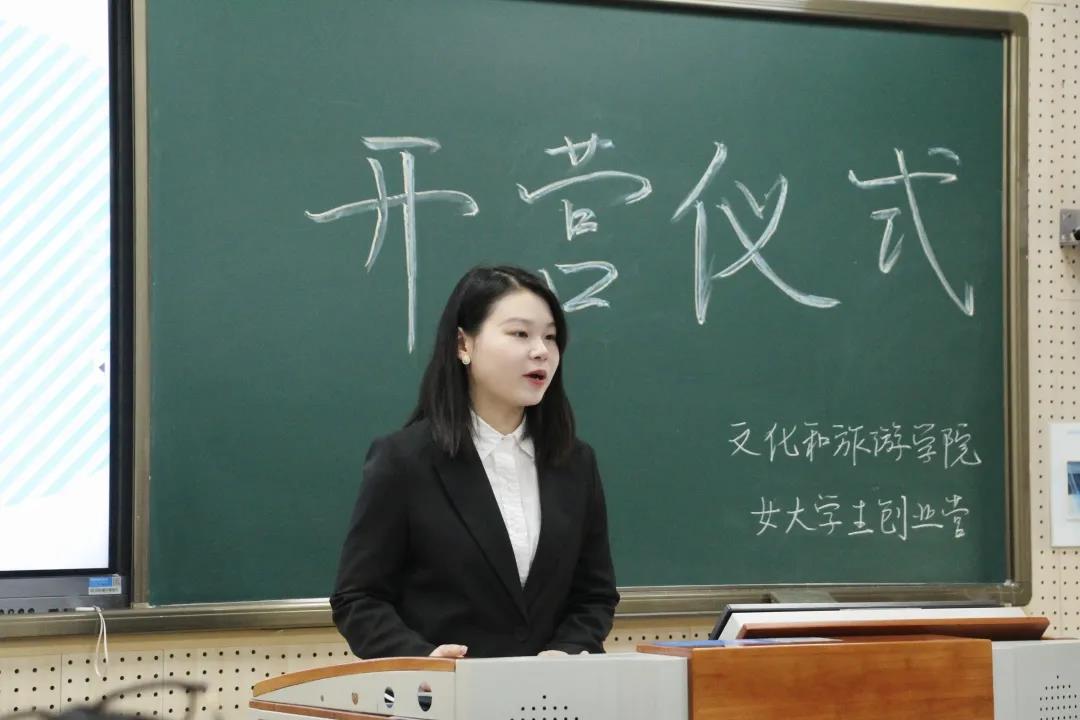 文旅学院党总支书记范芸芸老师首先为开营仪式致辞,感谢学校妇联的支持,并代表学院对导师的到来表示热忱欢迎,提及86年前的今天爱国青年掀起全国抗日救国运动的新高潮,以此“129精神”寄语学员们把握机遇,在理论学习和实践历练中激发创业热情,以“她力量,正青春”作结,描绘了创业营的理想蓝图。