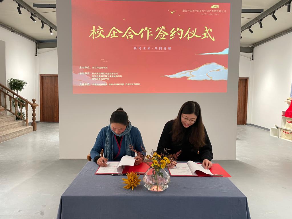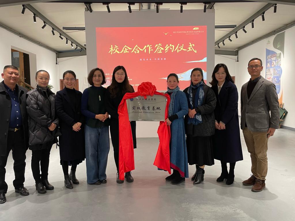 为加强校地合作,培养创新型、实践型人才,1月9日,文旅学院代表学校与杭州秀空间艺术品有限公司共建实践教学基地的签约仪式在外桐坞秀空间美学馆举行。