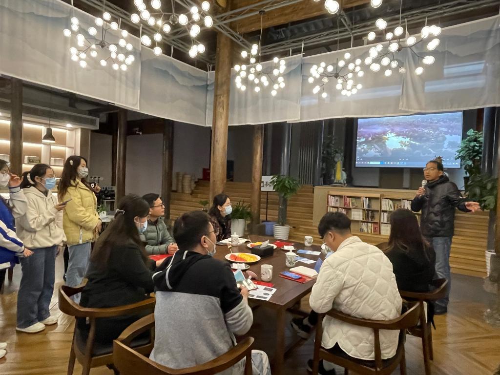 3月21日下午,学院副院长贾新明、数字文旅系系主任孙刘伟以及指导教师代表王敏娴老师带领文旅学院6个大学生创业团队的12名学生代表来到“今夕共西溪”现场,与“今夕共西溪”项目总经理吴斌,宁波亮剑互娱杭州公司总经理张瑞涛、嘉兴公司总经理庞锐、嘉兴公司路璐老师一起进行交流。