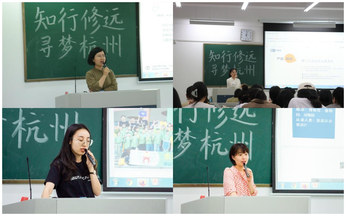 长乐教育副总经理李樱以“课程设计的底色是发自内心的热爱”为题,向学生介绍了《梅树台下读于谦》《趣读三潭学造景》等特色课程,鼓励学生带着满腔热爱设计研学课程作品。