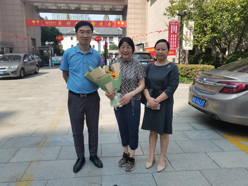 为进一步弘扬尊重老教师的光荣传统,增强退休教职工幸福感和归属感,9月30日下午,正值国庆节、重阳节前夕,院长张健康、党总支书记范芸芸、办公室主管黄琳来到今年退休的蔡依萍老师家中探望慰问,并进行了亲切交流。