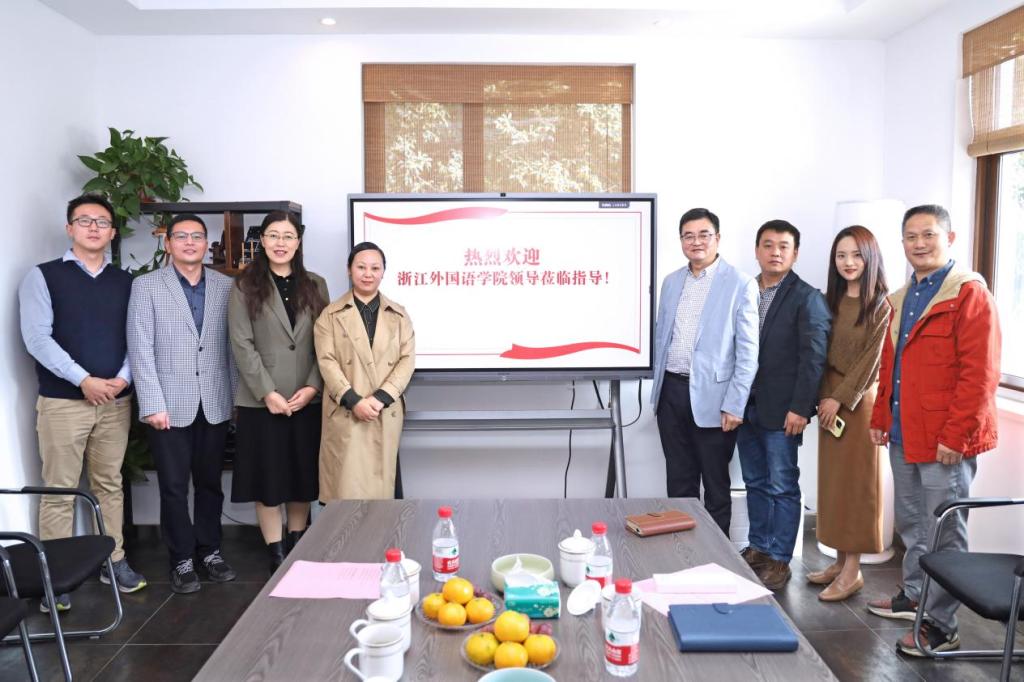 10月20日上午,文旅学院党总支书记、副院长范芸芸、副院长贾新明、张跃西教授、数字文旅系系主任孙刘伟与办公室郝韵一行赴华语之声(杭州)传媒有限公司学习调研,就产教融合、校企合作等方面进行交流讨论。华语之声传媒董事长徐志清、邦邻里公司总经理姜永胜和华语之声影视公司总经理张燕华热情接待了文旅学院一行。