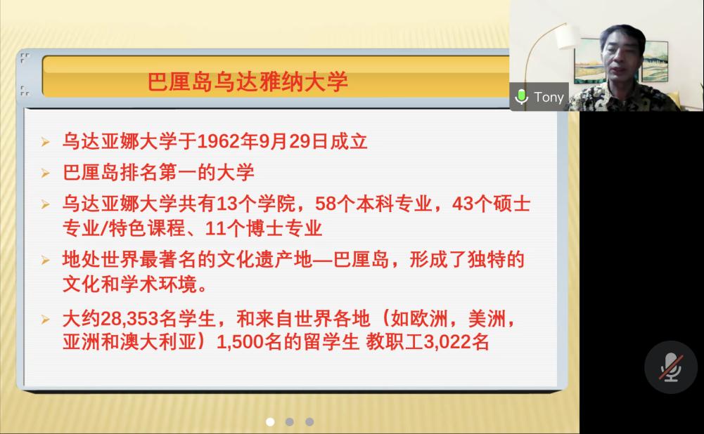 2023年2月23日晚,台湾三级片 、国际交流与合作处共同主办走近“一带一路”高等教育系列讲座,主题为:走进印尼高等教育,探讨“中文+旅游”教育合作。