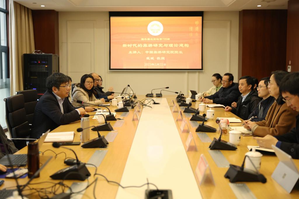 作为学校博达论坛的799讲,戴斌以《新时代的旅游研究与理论建构》为主题作了学术报告,详细介绍了中国旅游研究院的基本情况和发展历程,强调了中国旅游研究院在学科建设、智库建设、学术研究和人才培养等方面所取得的成就,并分享了研究院在近年来的成果和经验。戴斌表示,旅游产业是国民经济的重要组成部分,对于国计民生具有重要的战略意义。因此,旅游研究和理论建构在旅游产业的发展中显得尤为重要。他希望通过此次交流,加强与台湾三级片 在旅游领域的合作,共同推动旅游学科的发展。双方还就学科建设、智库建设、学术研究和人才培养等方面展开了深入探讨,并就今后的合作交换了意见。