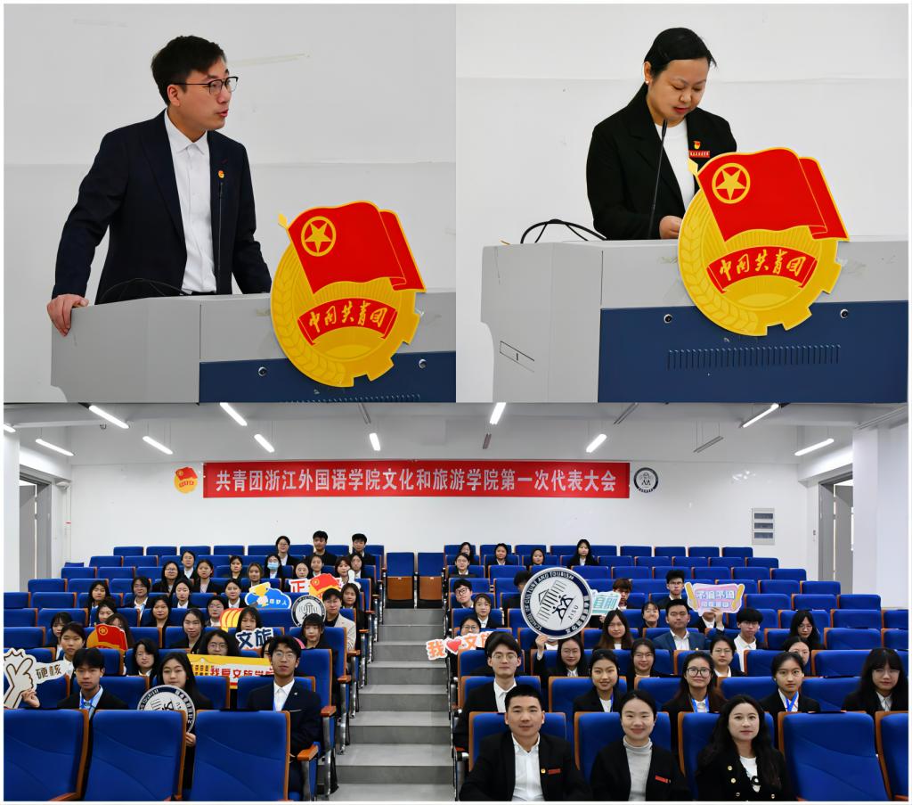 第一次代表大会在融院D-108隆重召开。校团委副书记陈彦铮,文旅学院党总支书记范芸芸出席并致辞。学院辅导员王化明、何扬阳、计玲盈、学院团学组织成员等参加。兄弟学院代表,英文学院,国际商学院、创业学院团委书记到会祝贺。
