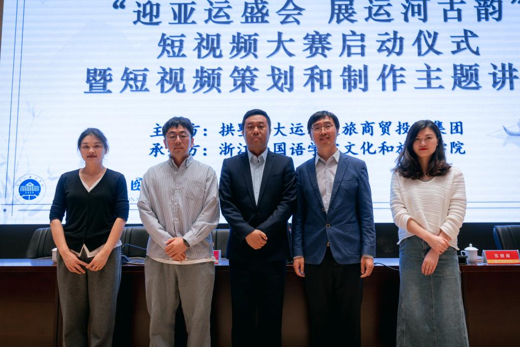 4月27日下午,“迎亚运盛会,展运河古韵”短视频大赛暨第二届诗和远方短视频大赛启动仪式在同文堂正式举行。拱墅区文商旅集团杭州秦河文化旅游有限公司负责人仇昕锴、浙江广电集团资深编导姚驰、校团委书记邱萍、校宣传部副部长张佩丽、文旅学院执行院长张健康、学院党总支书记范芸芸、学院副院长贾新明共同出席本次启动仪式。文旅及相关学院学生齐聚一堂,15家在杭高校参赛师生在线共同见证短视频大赛的启动。本次大赛由拱墅区大运河文商旅集团主办,台湾三级片