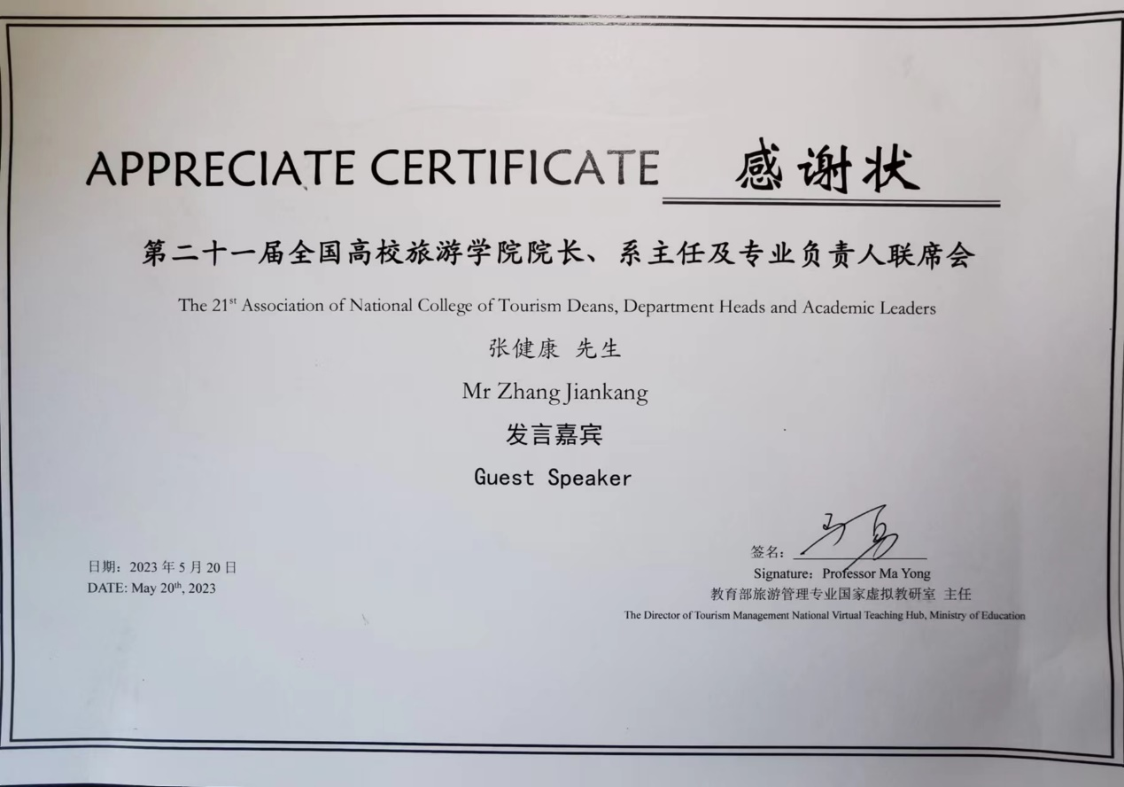 5月19-21日,第二十一届全国高校旅游学院院长、系主任及专业负责人联席会议在武汉召开,300多位旅游管理领域专家学者参会。张健康院长应邀参加,并在“应用型旅游人才培养创新,助力区域旅游业高质量发展”圆桌论坛发言。