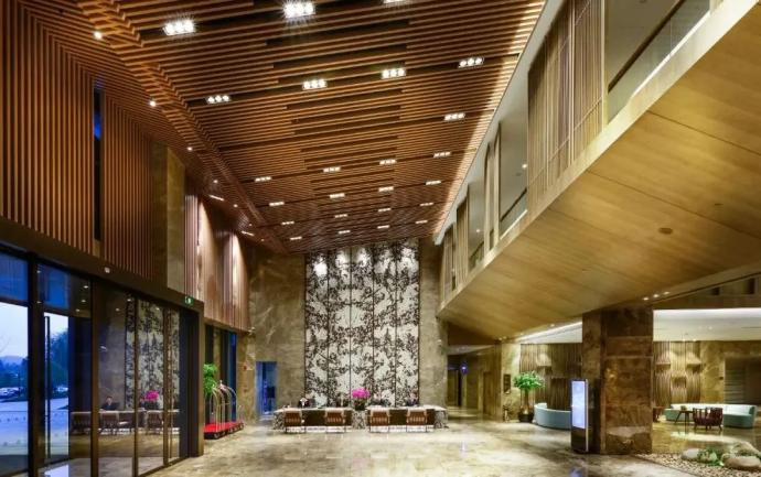 上午,团队首先参观了安吉竹博园开元度假酒店。酒店采用了竹文化概念设计,使得建筑线条简洁流畅,中式与传统经典相结合,风格典雅,极富时代感。酒店设有中、西各式高档餐厅、宴会厅,顶层观景餐厅可以俯瞰整个酒店的景观,绿水青山,尽显大自然的纯净风光。随后,在酒店负责人带领下,同学们参观了相关设施。酒店共有311间客房,一房一景,各有千秋,客房舒适简洁、独立的景观阳台视野极佳。酒店会议厅、健身中心、游泳池等配套设施也一应俱全。