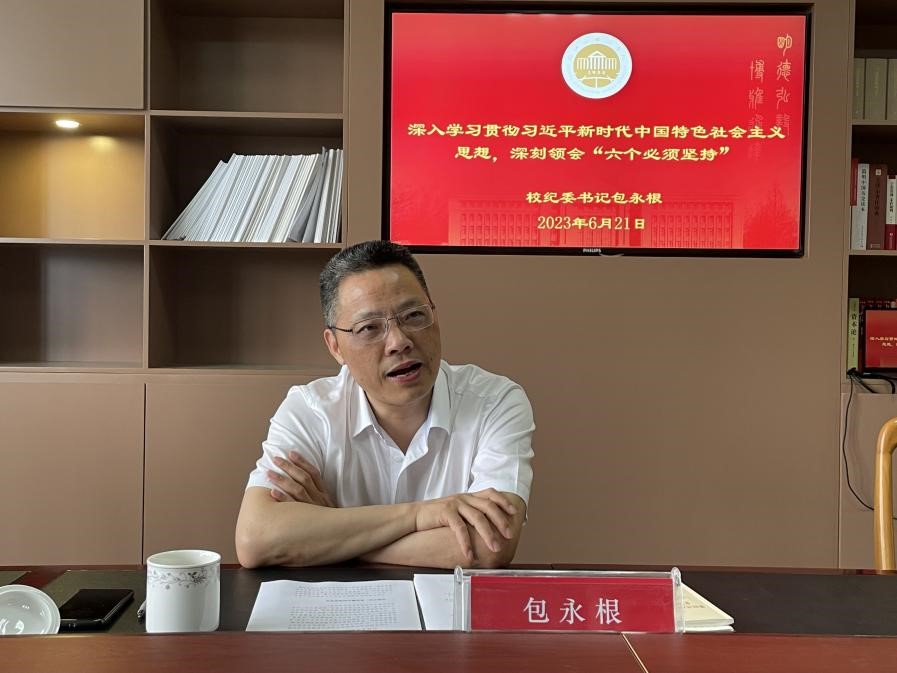 6月21日,校纪委书记包永根参加文旅学院理论学习中心组集中学习,并作了题为“深入学习贯彻习近平新时代中国特色社会主义思想,深刻领会‘六个必须坚持’”的领学。学习会由文旅学院党总支书记范芸芸主持,学院理论学习中心组成员参加。