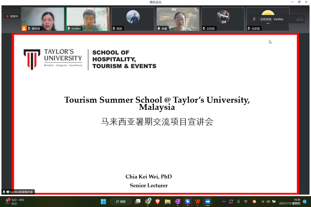 7月13日,学院以在线形式召开了2023年暑期学生国际教育交流项目宣讲会。副院长贾新明、暑期项目负责人周波、李娜和泰莱大学Chia博士介绍了项目情况并回答了同学们关切的问题。