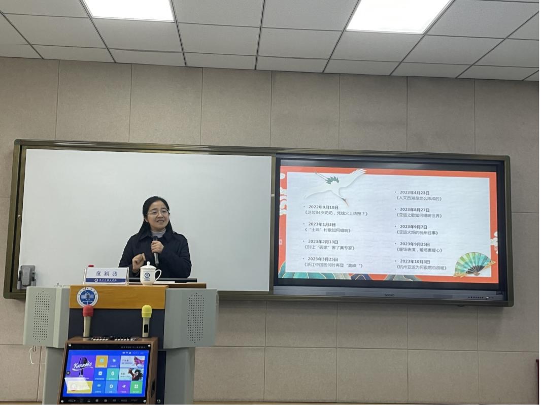 在提问环节,童老师耐心解答了同学们的疑问。童老师还鼓励同学们开展浙江文化印记打卡活动。