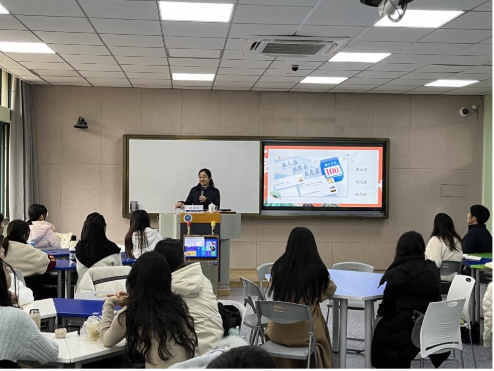 童老师结合具体的文稿案例,与大家分享了创作心得来源、写作的思路和经验。她深情寄语在座的同学们要努力享受写作,不要被其中的艰难阻挡住脚步;要敢于走出舒适区,努力成为可以接受各种挑战的人;要用脚步丈量时代,用真心感知写作之美。