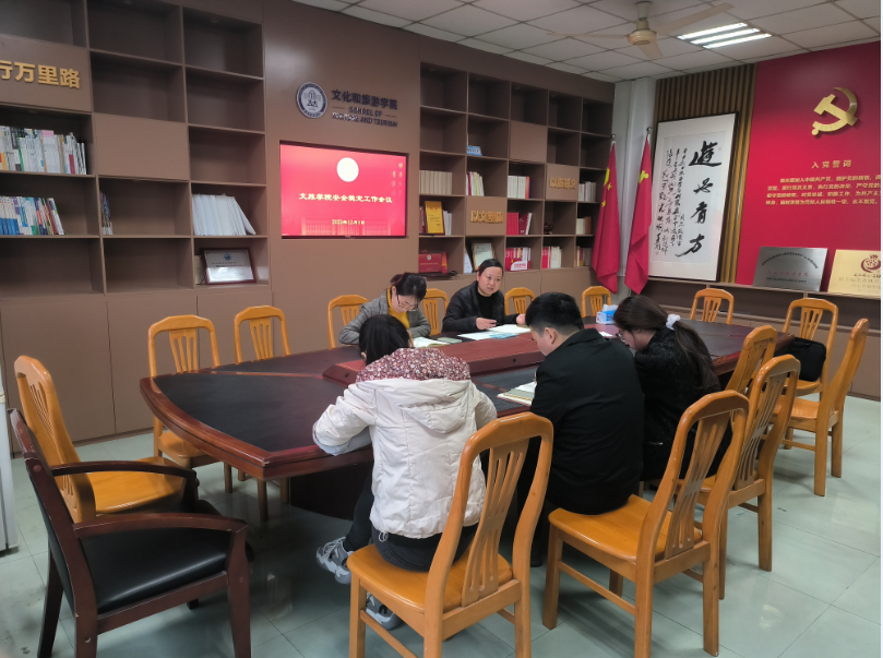 12月4日,学院在望D428会议室召开安全稳定工作会议。会议由党总支书记范芸芸主持,学院党总支副书记陈超以及办公室、学工办相关同志参加会议。