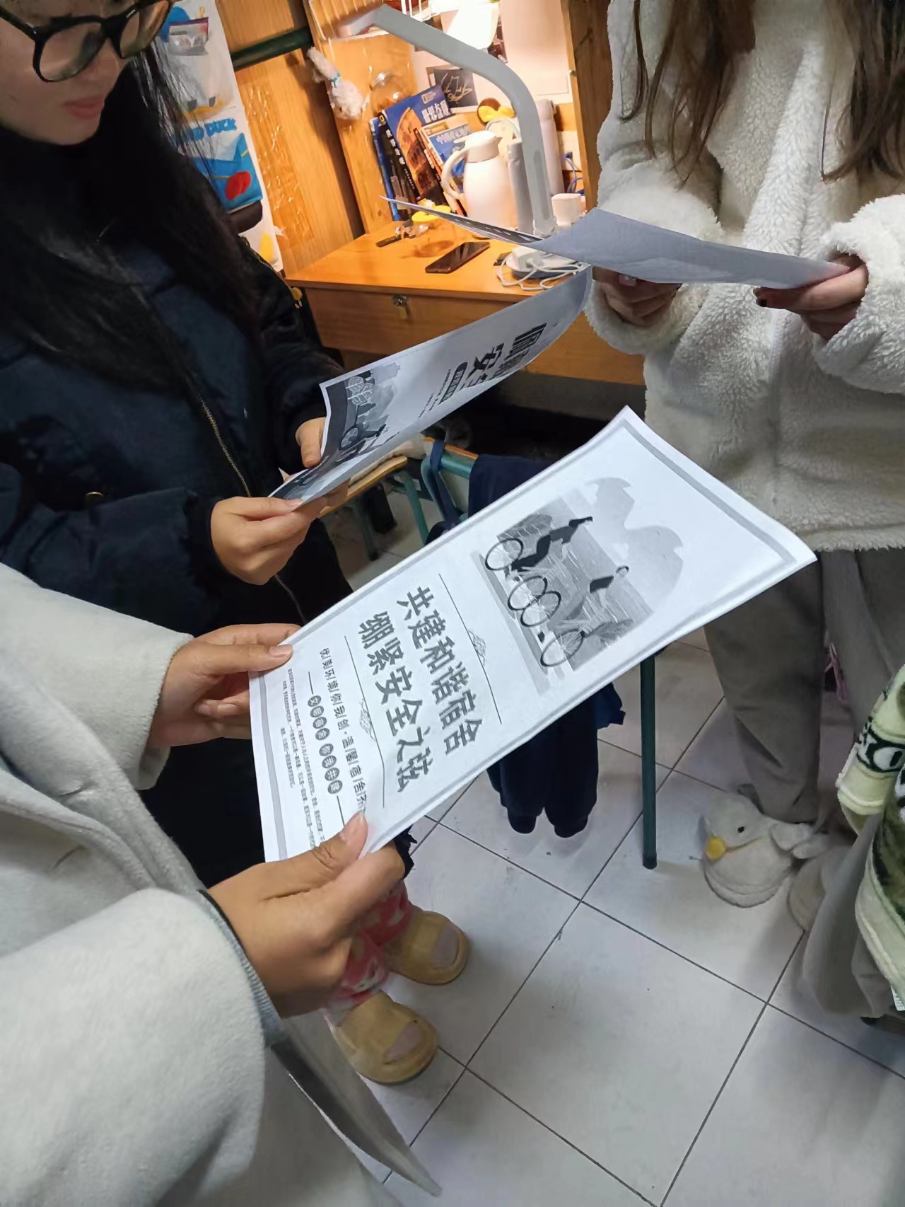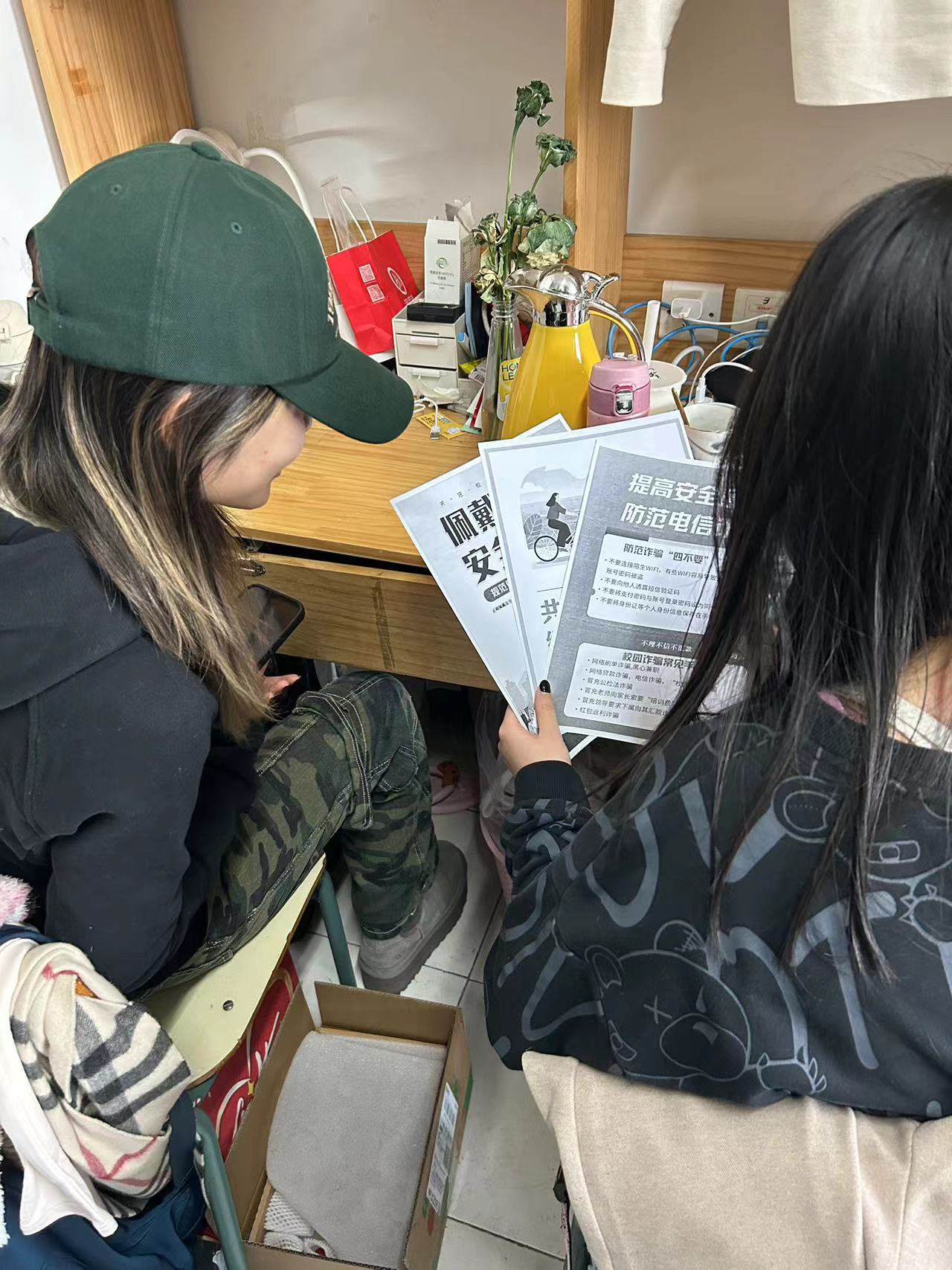 宣传过程中,学院学生心理及公寓文化中心工作人员向同学们强调了安全意识的重要性,提醒每位同学自觉维护宿舍安全,提高防范意识和自我管理能力,遵守宿舍规范化管理条例,同时向同学们宣传普及了校园安全、行车安全、防范诈骗等安全知识。
