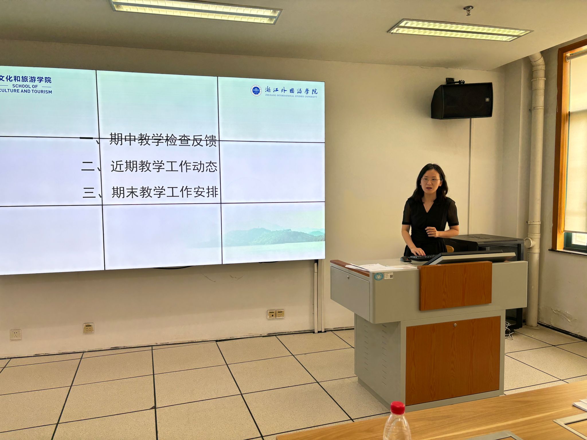 学院院长助理王敏娴明确了近期学院教学工作重点。她对期中教学检查反馈意见进行了通报,从外交资源进课堂、教材工作和学科竞赛等方面介绍了近期教学工作动态,并就毕业生实习实践及论文工作等方面对期末教学工作进行了安排部署。