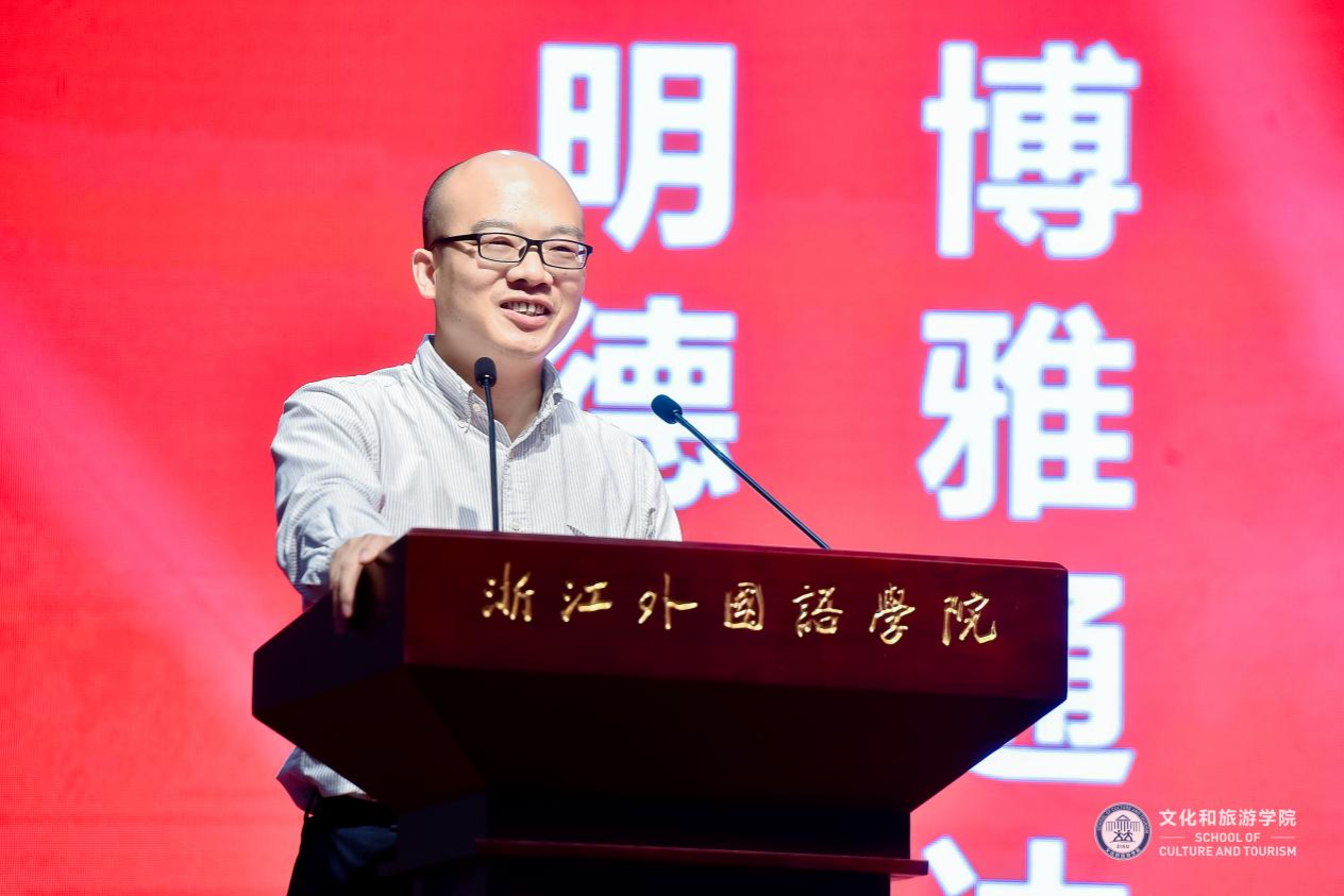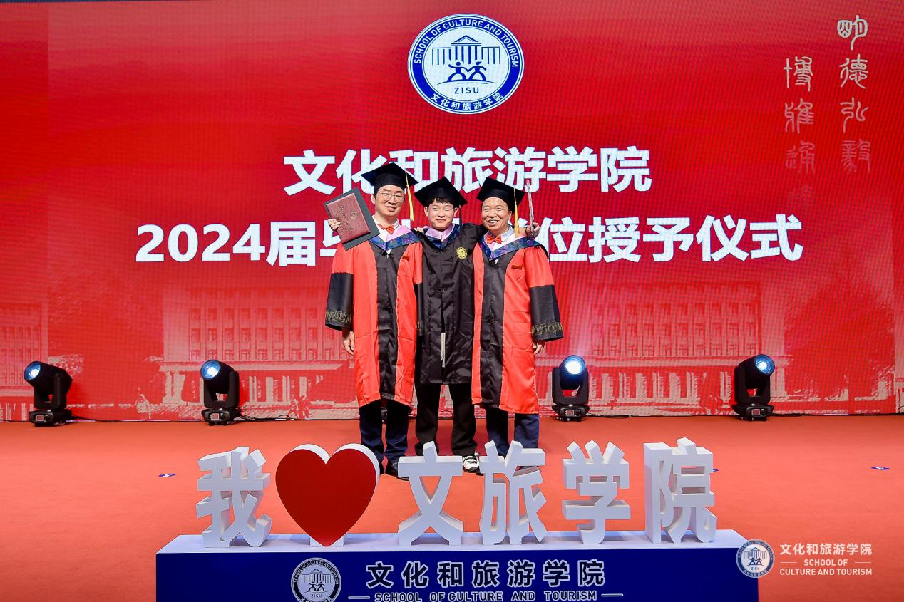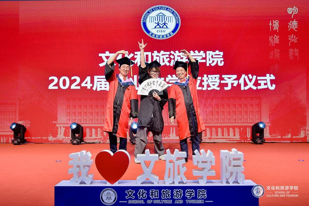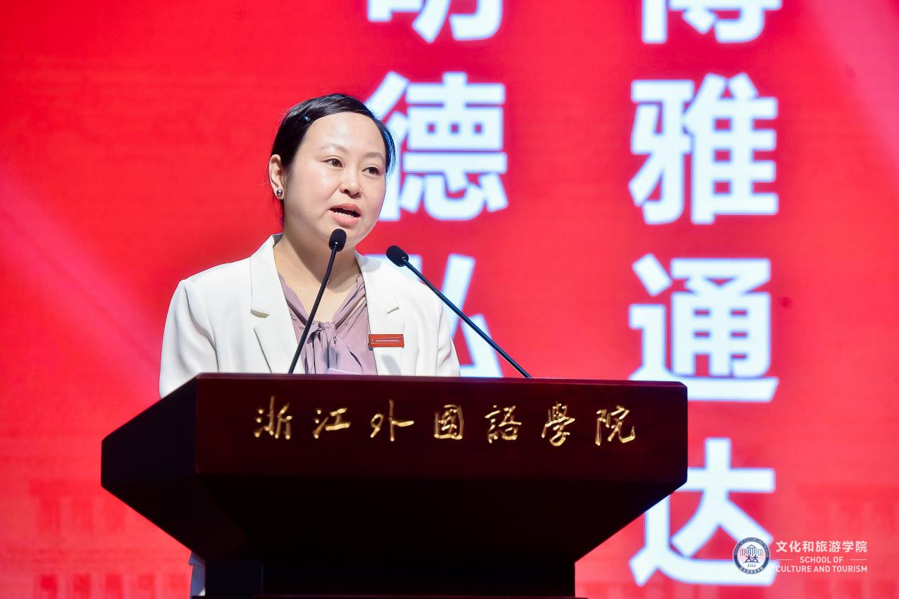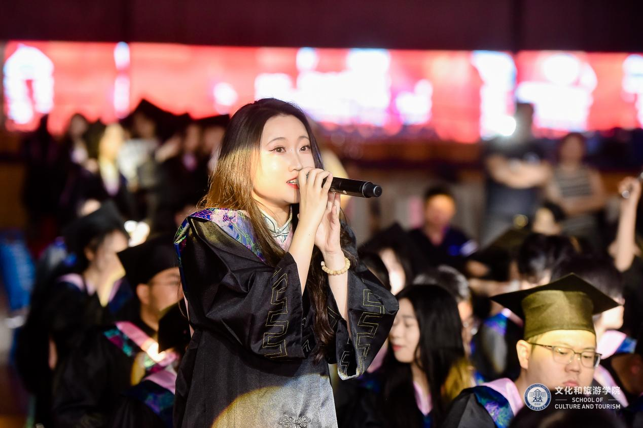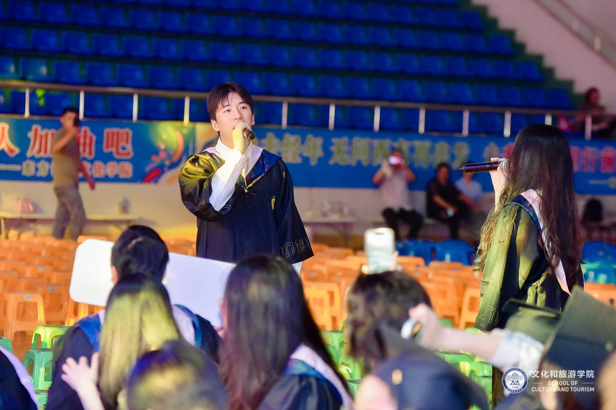 毕业生代表苏航和教师代表沈旭炜先后发言。苏航同学代表全体毕业生,深情表达了对母校、对老师、对同学的真挚感谢与美好祝愿,她表示,作为文旅学子,有幸见证了文旅学院的成立、完成联合国世界旅游组织旅游教育质量认证、再到近期与北大的合作共建。大家作为文旅学子,将不会困阻于眼前的大山,未来会在天地间,遇见更好的自己。毕业班班主任沈旭炜老师以院训“博学笃行,无远弗届”为引,嘱咐每位文旅毕业生带着“我本是高山”的信念,用文化的智慧和旅游的热情,书写人生的精彩篇章。