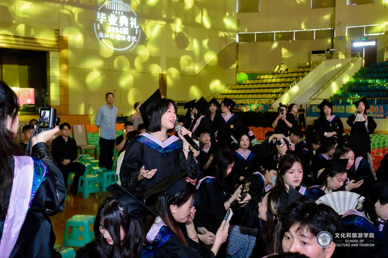 学术院长吴重生、执行院长张健康、党总支书记范芸芸、院长助理王敏娴、会展传播系主任刘明广、数字文旅系副主任路璐,2024届各毕业班班主任、辅导员及全体毕业生及家长代表共同见证这一难忘时刻。仪式由学院党总支副书记黄瑾主持。