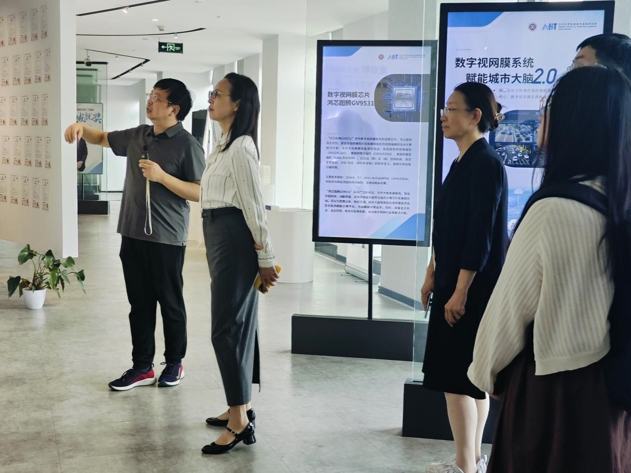 仪式前,张校长一行在北大信研院李祎书记带领下参观了成果展厅,大家了解了北大信研院的发展概况、院士创新团队、产业数字化赋能、创新成果孵化等,对于北大信研院作为引领国内数字经济发展的信息技术研发和智库机构有了更加直观深入的了解。