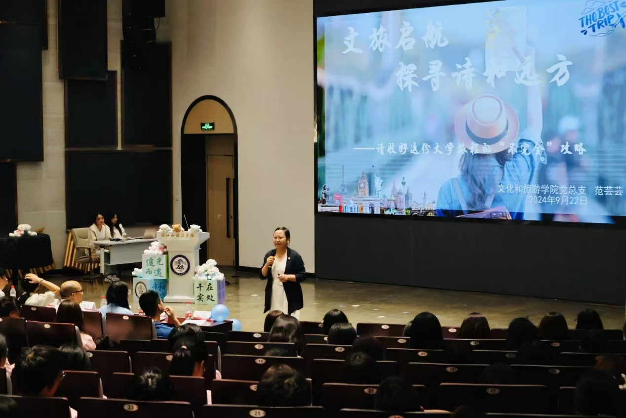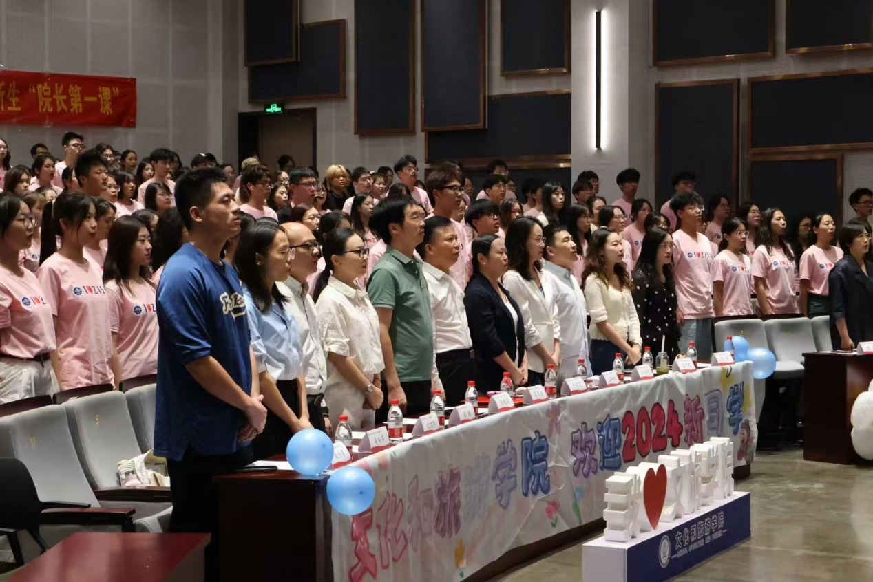 9月22日晚,文旅学院2024级新生开学典礼在望C116举行,新“文旅人”共同开启人生新篇章。学院党政班子成员、系主任、新生班主任、辅导员及2024级新生、班级助理出席典礼。典礼由学院党委副书记黄瑾主持。