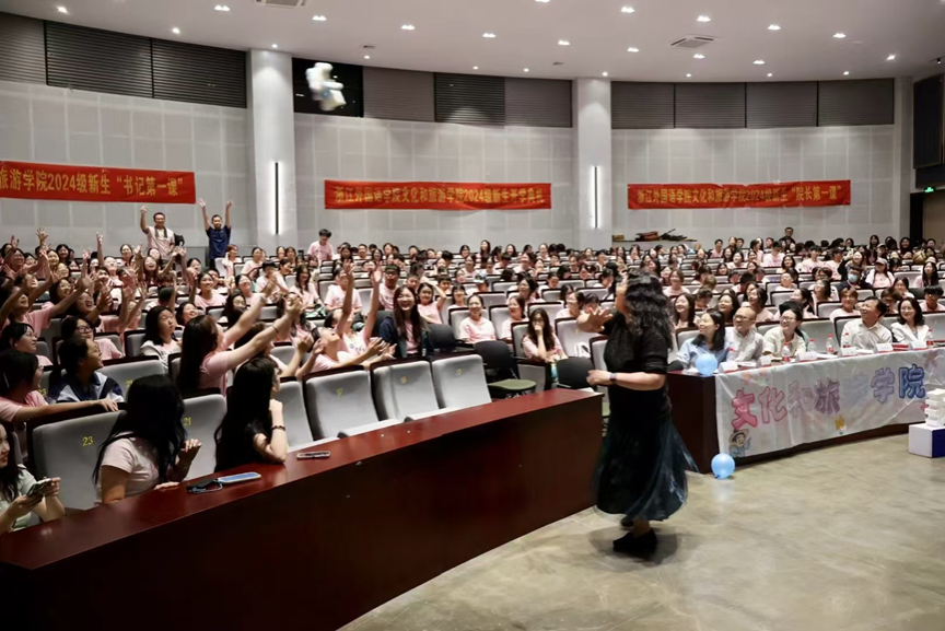 随后,学院执行院长张健康、党委书记范芸芸分别作院长、书记第一课。张健康院长从学院发展历程、师资力量、人才培养优势特色和发展平台出发,鼓励同学们人人出彩,争做卓越文旅学子。范芸芸书记将大学阶段比作一段旅途,解读“浙江”、“外国语”、“学院”的深层含义,勉励新文旅学子做好浙外文旅学院的“旅游攻略”,不应只看当下,而是要放眼大学四年,从文旅启航,向前程出发,奔赴星辰与大海,探寻诗和远方。