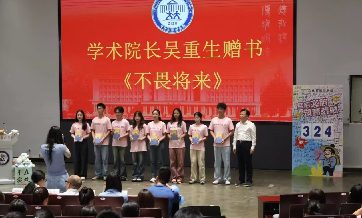 典礼中,各班班主任为新生代表赠送《习近平的七年知青岁月》。本次赠书活动是深入学习贯彻习近平新时代中国特色社会主义思想、落实“青年学子学青年习近平”学习教育工作并激励全体新生勤思善学、笃行致远的具体措施,目的是让习主席在青年时期经历的艰苦磨砺、奋斗成长的经历成为广大新生最深刻的人生启迪和精神养分。吴重生院长向新生代表赠送自己的著作《不畏将来》,望各位新生牢记初心,怀揣一以贯之的忠诚热爱、富民强国的抱负担当,不畏将来,学有所获。