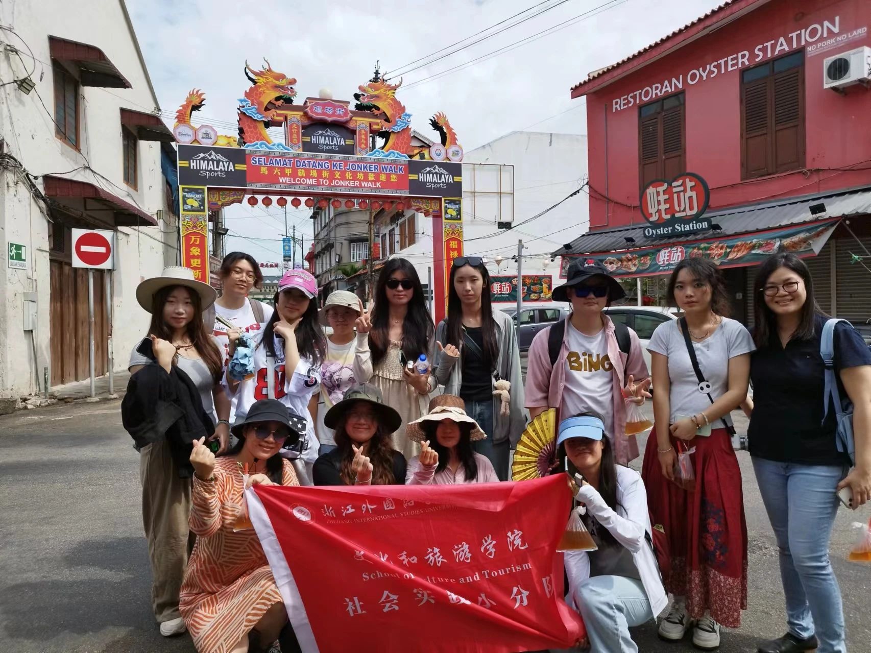 实践队调研的第一站来到了马六甲。历史上,马六甲海峡是“海上丝绸之路”的重要通道。在这里,队员们参观了郑和下西洋遗址,聆听了当地居民讲述海上丝绸之路的故事,感受着历史的沧桑。从小耳濡目染茶文化的22旅游管理专业莫子轩,在马六甲看到家乡的梧州六堡茶时激动地说,“茶文化在促进中马两国文化交流中发挥着不可替代的作用,踏着‘茶船古道’在海外延伸线的轨迹,广西梧州六堡茶被送到数千公里之外的马六甲,我希望通过此次实践为梧州六堡茶文化的海外推广贡献青春力量。”