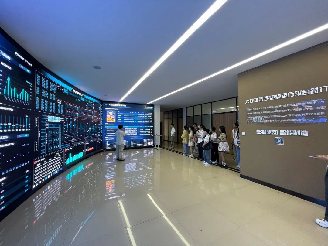 浙江大胜达包装股份有限公司是国内首家纸箱包装行业智能工厂,以国际领先的智能化产线、集成物流链为平台,融合多种信息化技术,全面实行数字化管控,智能化生产、可视化管理和智能化物流,依托自主研发的AI小方人工智能包装设计平台,全面实现了从包装智能设计、自助下单到自动化生产的流程,是现代制造业与数字化技术深度融合的典范。在参观过程中,同学们了解了大胜达集团的发展历程、企业特色以及产业领域,并着重考查了大胜达数字包装运行平台,还体验了使用AI小方进行包装设计的过程,深入理解了智能包装设计的理念和技术细节。之后,学员们还参观了高度自动化的包装工厂及个性化产品展厅,深切感受了包装行业的智能化变革。