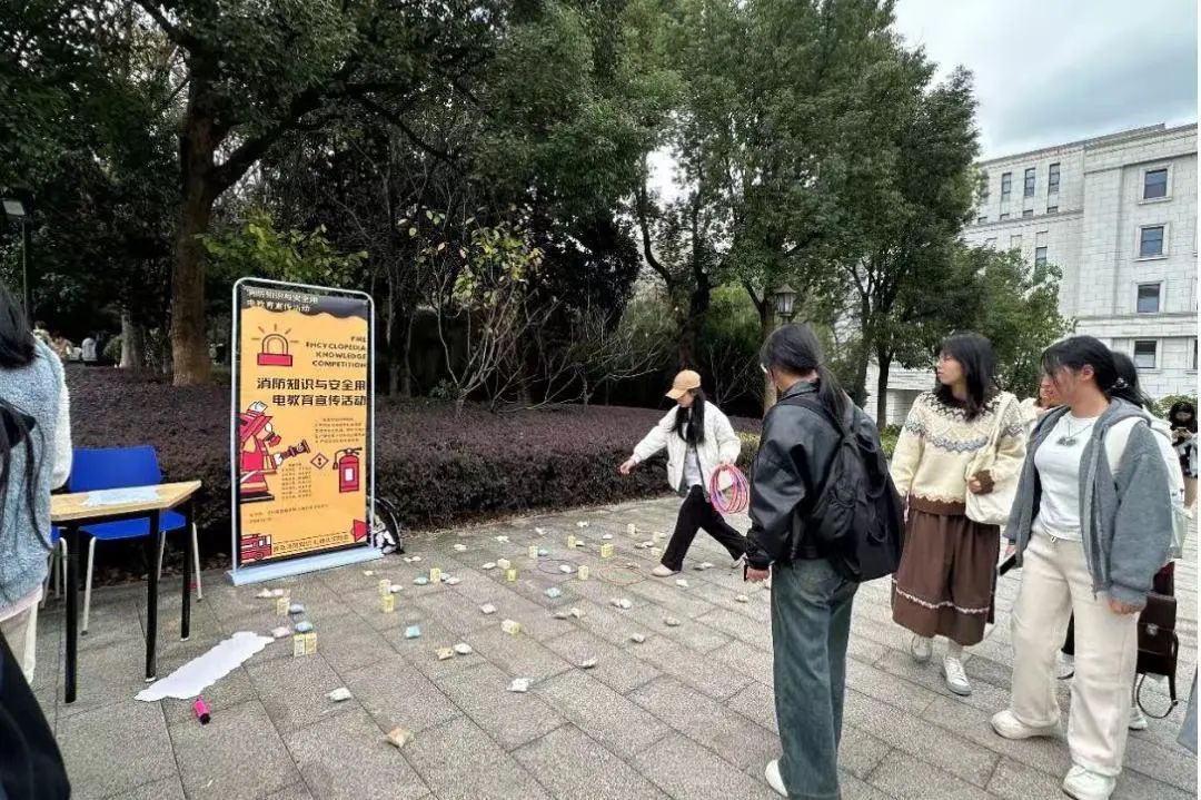 答对问题的同学还能赢得一次套圈机会,这一创新的奖励形式让活动充满了趣味性和竞争感。同学们在答题中既展示了自己对安全知识的储备,也在互动中进一步加深了对安全知识的理解。