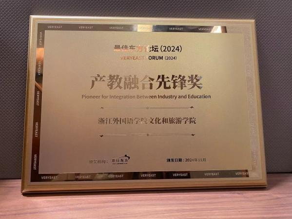 此次“产教融合先锋奖”是对学院在推动专业与产业深度融合培养人才方面取得成绩的认可,也体现了学院在联合国世界旅游组织旅游教育质量认证后持续改进的成效。